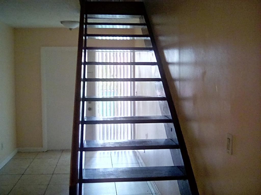 Very nice, large, bright 2 story townhouse with 3 bedrooms and 3 bathrooms. One bedroom and 1 full bathroom on first floor. This unit has vaulted ceilings, a Galley kitchen, tiled floors, wood stairs, laundry area with full size washer and dryer, a large covered enclosed patio and hurricane shutters.