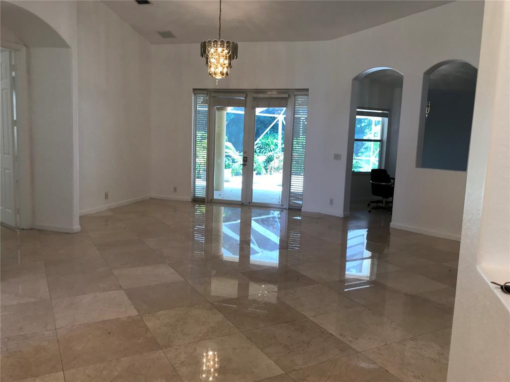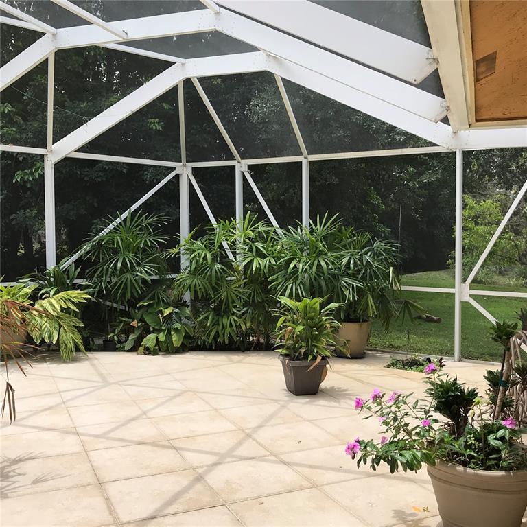 Lushly tropical landscaping on the nearly 2100 sq.ft. lot of this contemporary home on a quiet cul-de-sac.Over 3800 square feet in this 4 bedroom, 3 bathroom home. There is a bonus room that could serve as playroom,office or den.Many windows create a light,open feeling. Large kitchen with lots of cabinet and pantry space. Stainless appliances. Separate utility room with washtub. Huge family room. Formal dining room. Breakfast area. Very large master bedroom and bathroom. Impact windows and doors. 2 a/c units, volume ceilings,marble flooring throughout. Relax on the tranquil dome-screened large patio backing up to preserved sanctuary.Beautiful circular pavered driveway. Two car garage.Tile roof. Great location with easy access to all main thoroughfares, shopping and restaurants.