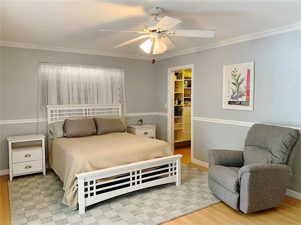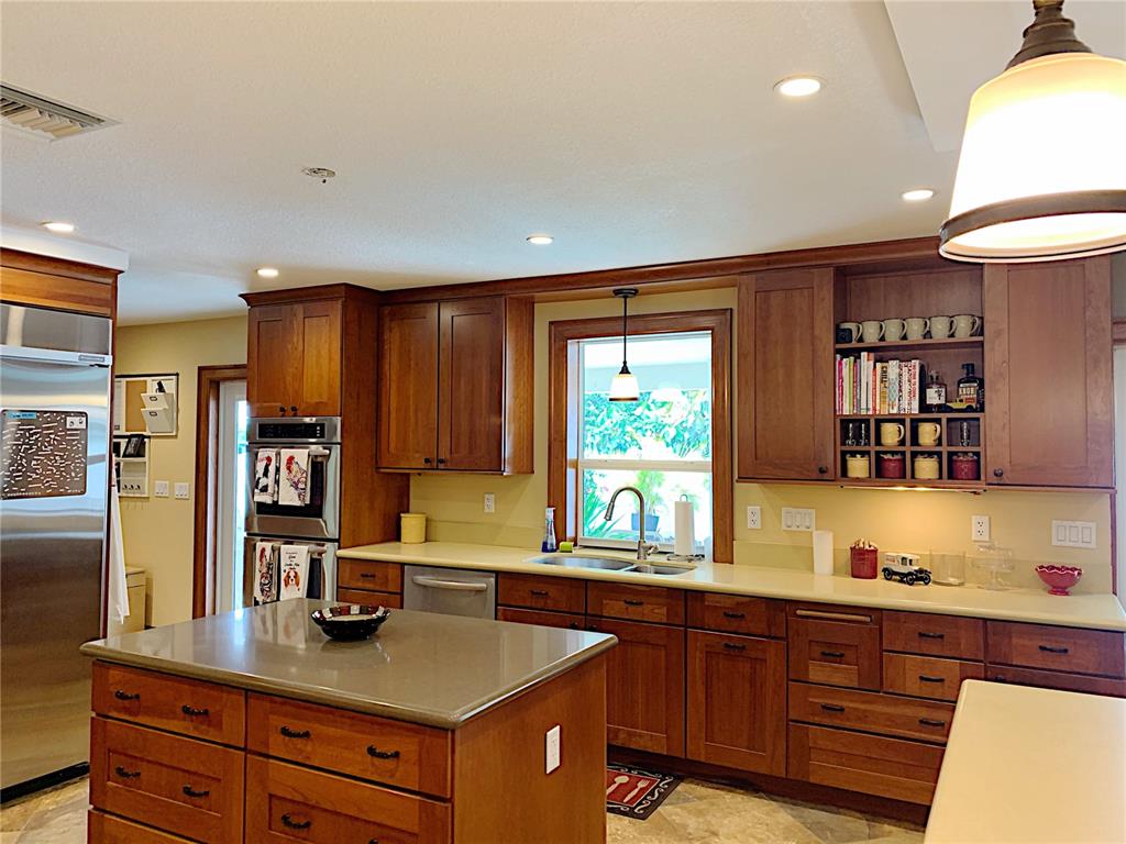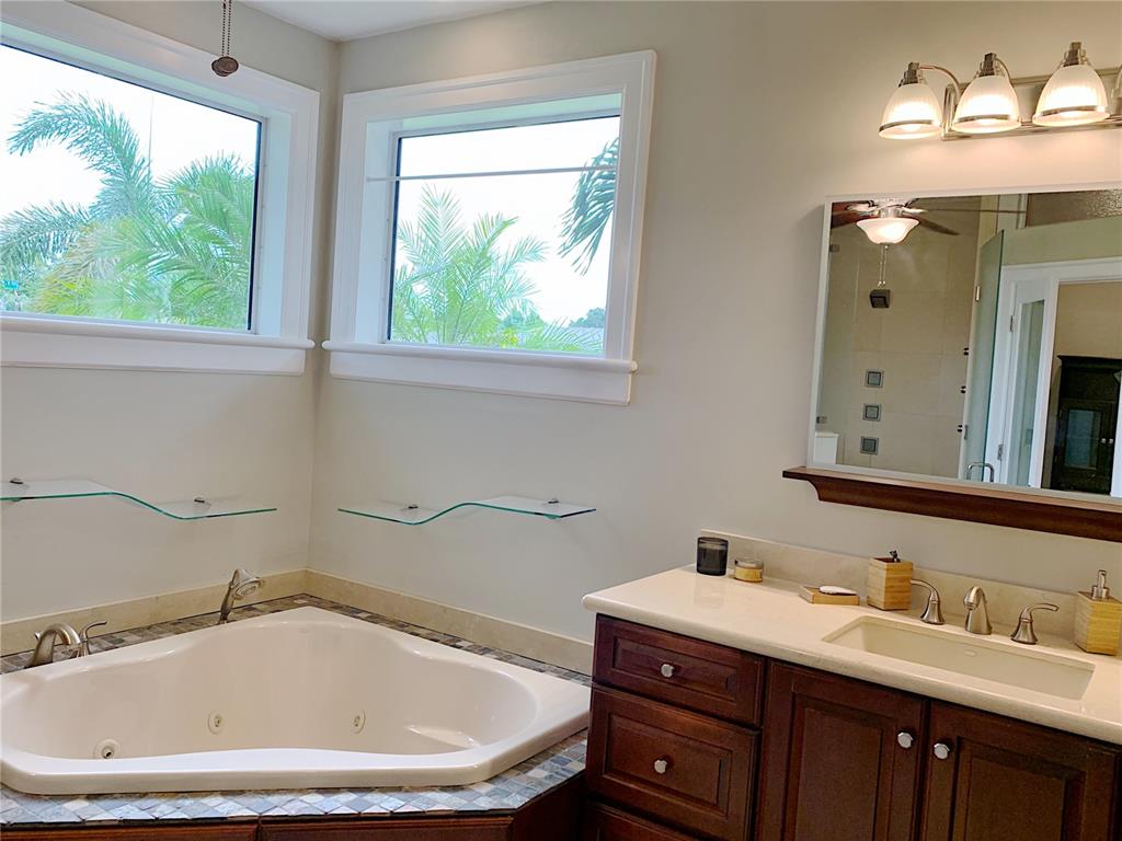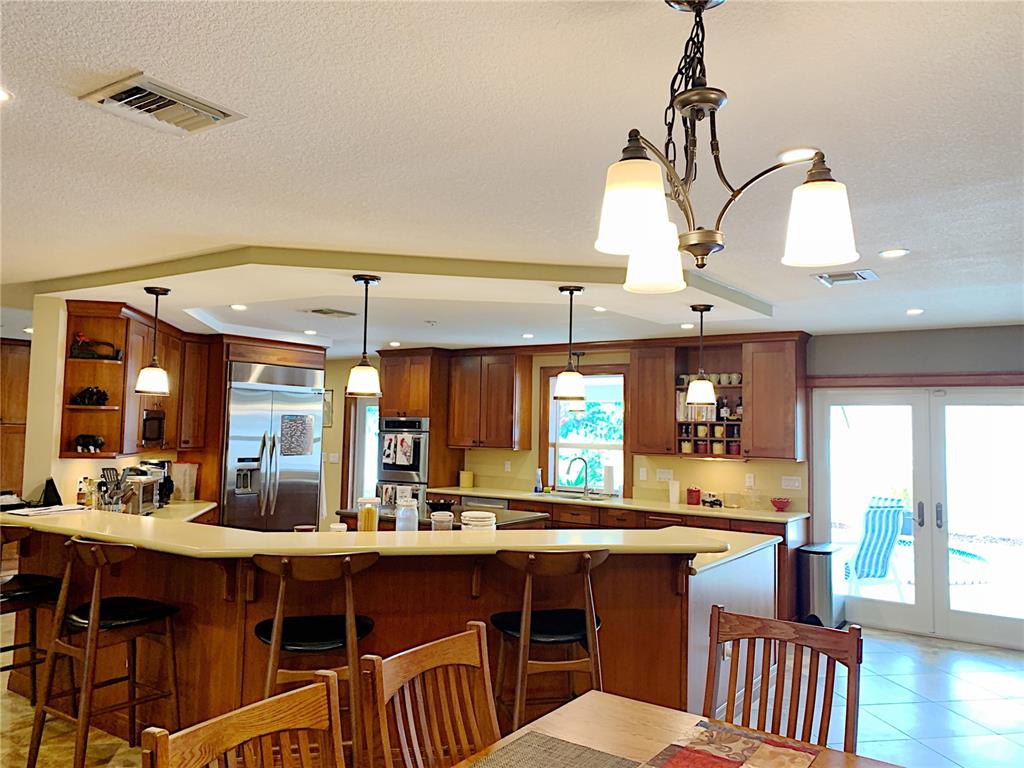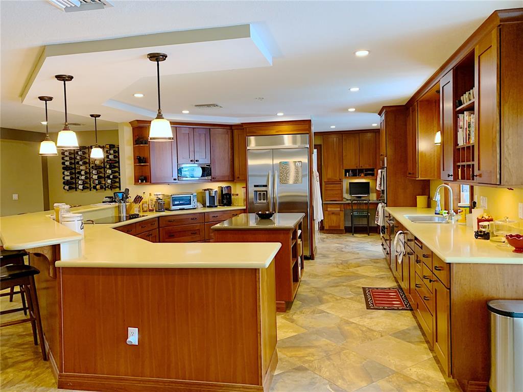 This home is a one of a kind find! Substantially Remodeled with top of the line upgrades throughout. Custom Chef-Inspired Kitchen, Expanded Great room and Master Suite boast high ceilings Hardwood floors and upgraded lighting. Master Suite has two walk in closets, Dual sink counters, Jacuzzi tub and a Rain shower that is out of this world! Second Master also has a Walk-in Closet, beautifully upgraded bath and access to the pool. Bonus area off the kitchen with built-ins galore and a Cabana Bath. Stainless Steel Kitchen Aid Appliances with Oversized Kitchenaid fridge and double ovens. Two Car garage with AC and tons of built-in Storage and utility room. Automatic Gate in rear for secured Slab parking for RV or Boat separate from pool area. Underground Utilities & Tankless Gas Water Heater