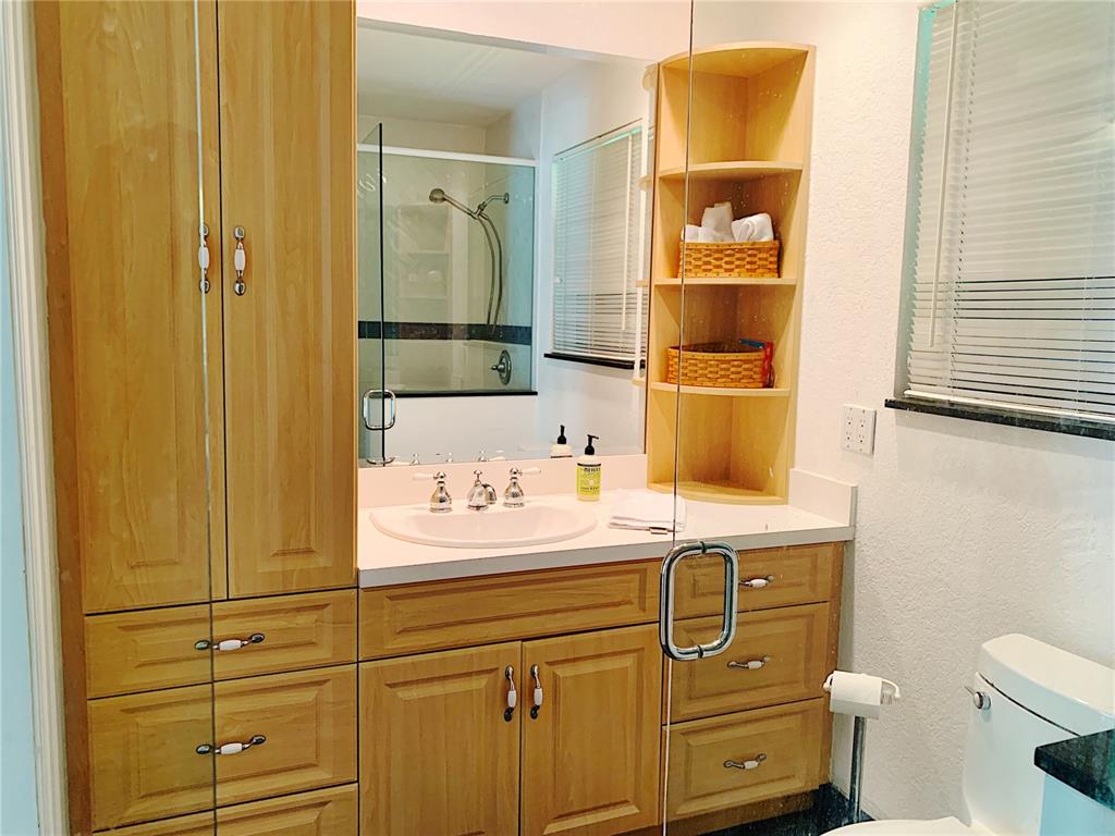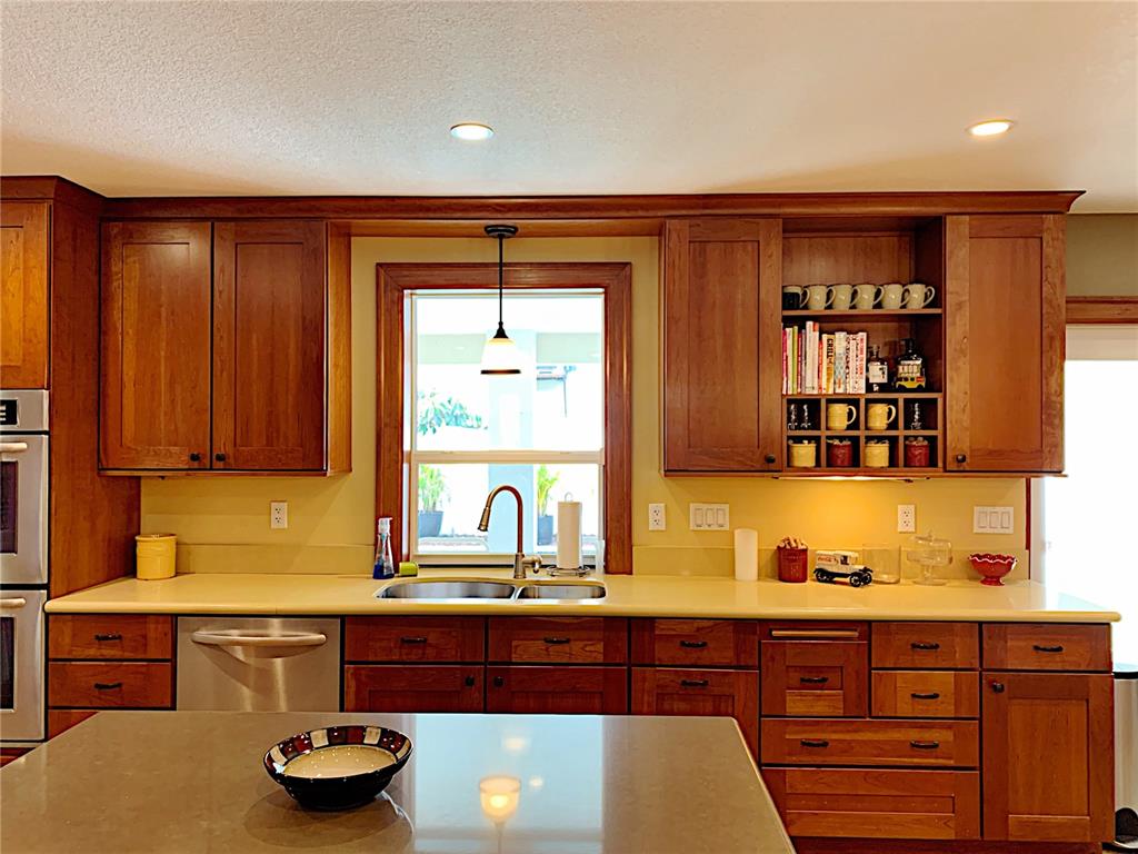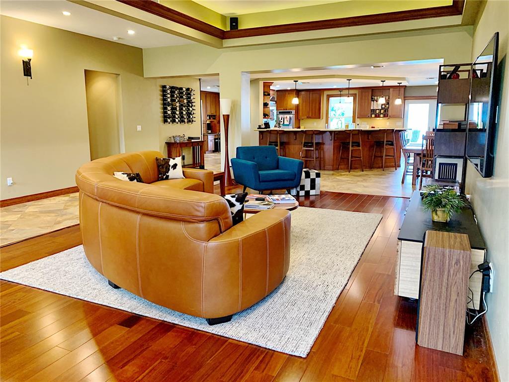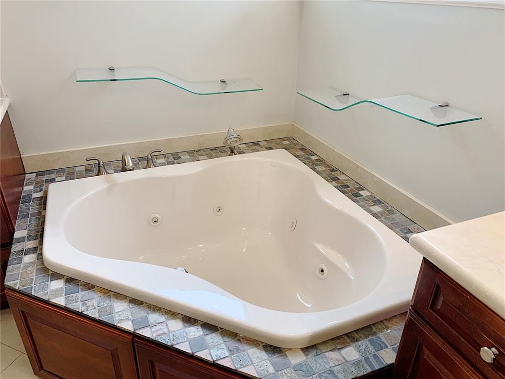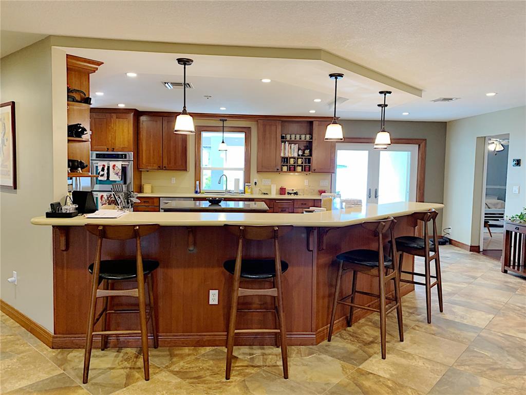 This home is a one of a kind find! Substantially Remodeled with top of the line upgrades throughout. Custom Chef-Inspired Kitchen, Expanded Great room and Master Suite boast high ceilings Hardwood floors and upgraded lighting. Master Suite has two walk in closets, Dual sink counters, Jacuzzi tub and a Rain shower that is out of this world! Second Master also has a Walk-in Closet, beautifully upgraded bath and access to the pool. Bonus area off the kitchen with built-ins galore and a Cabana Bath. Stainless Steel Kitchen Aid Appliances with Oversized Kitchenaid fridge and double ovens. Two Car garage with AC and tons of built-in Storage and utility room. Automatic Gate in rear for secured Slab parking for RV or Boat separate from pool area. Underground Utilities & Tankless Gas Water Heater