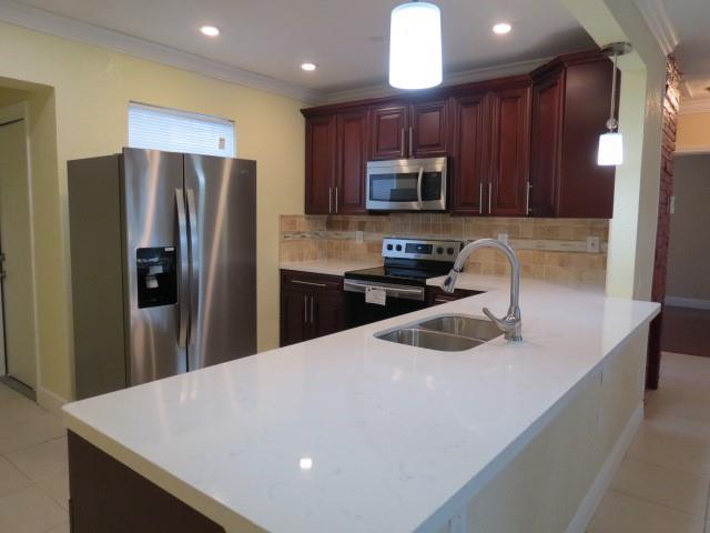 Completely renovated three bedroom, two bathroom house with a one car garage in the heart of Miramar. New kitchen cabinets, stainless steel appliances along with quartz countertops. Wood flooring and tiles throughout the house. Upgraded electrical box with permits.New windows.