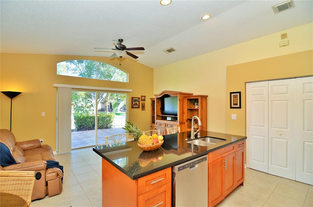 Desirable one-story home with 3 bedrooms and 2 baths. Beautiful remodeled kitchen with SS appliances, wood cabinets, back splash and granite countertops. New H.E. Rheem Air Conditioner, new tank-less water heater, tile in main areas and laminate wooden floors in all bedrooms. Beautiful backyard with patio pavers, lake view, and fruit trees.