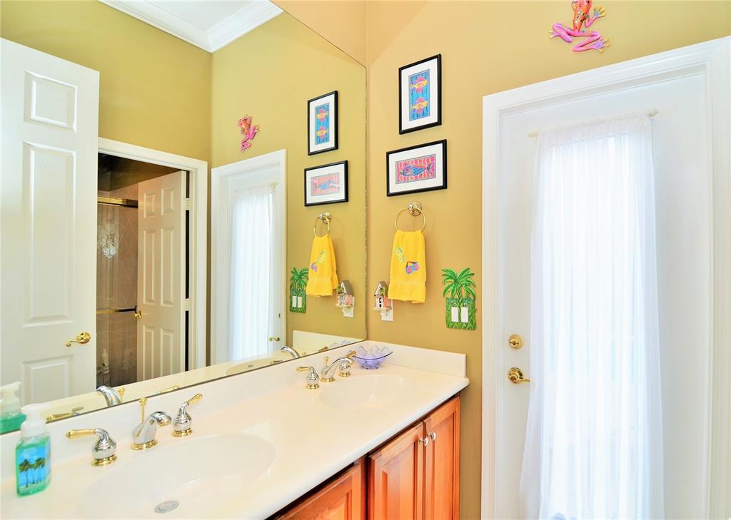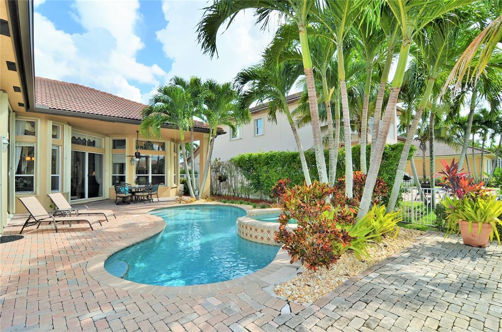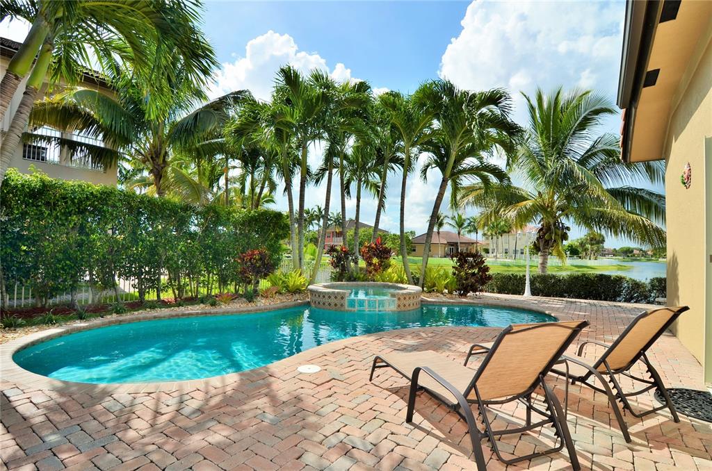 This pristine one-story home has 5br/3baths/2cg/pool/lake with a lots of natural lighting and 3-way split floor plan, upgraded kitchen with granite countertops and new s.s. appliances, Bolivian Rosewood floors in main areas, new water heater, new h.e. a/c unit, new washer & dryer, new garbage disposal, accordion shutters, new front door with impact glass, new garage motor, Bose surround sound speakers. Enjoy the gorgeous patio with pool and lake view.