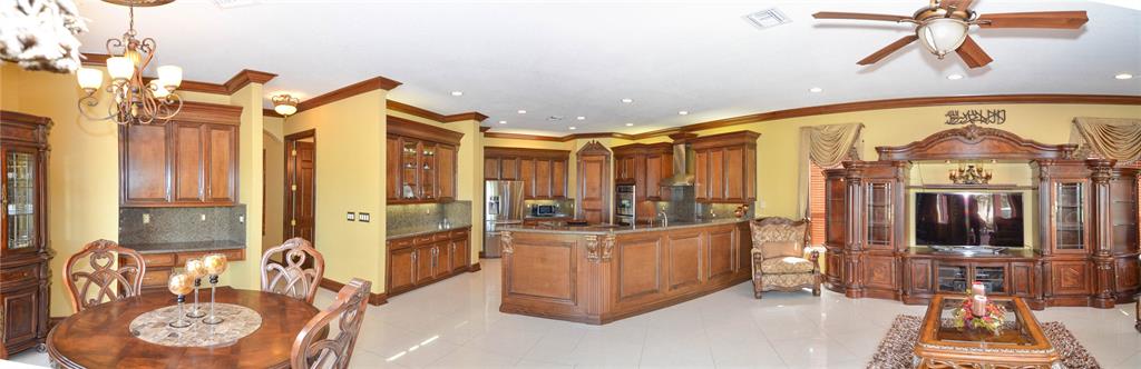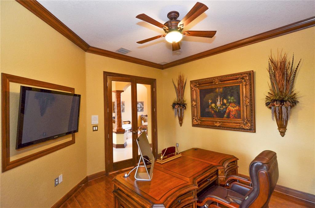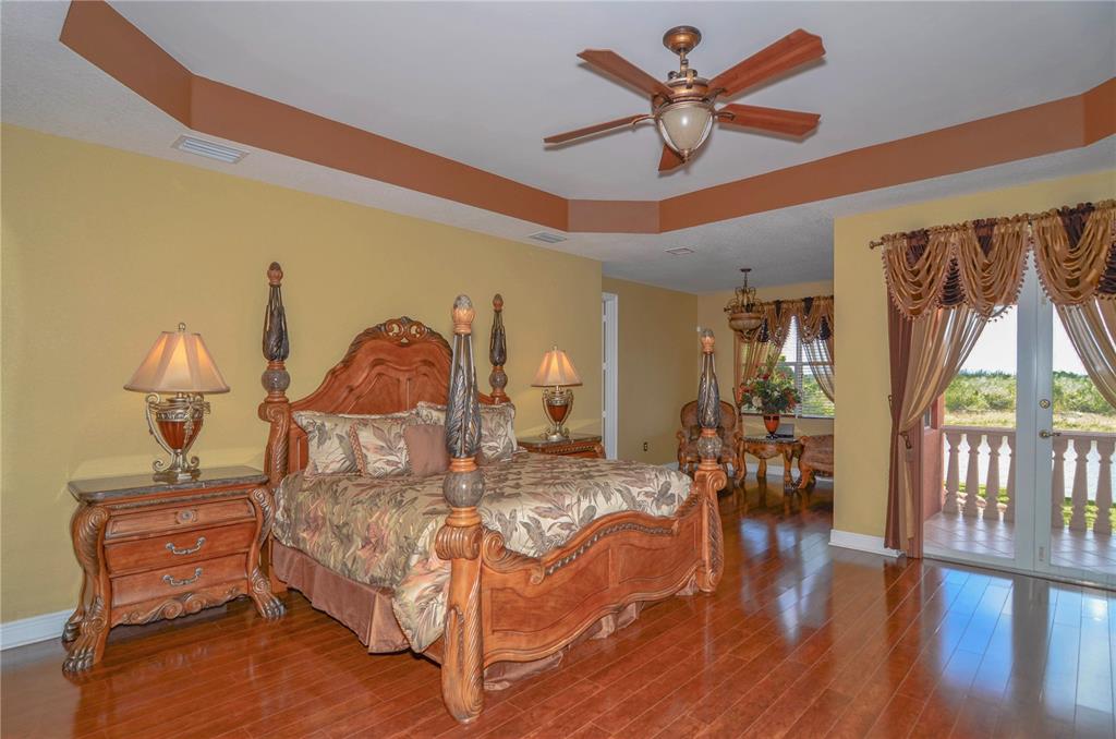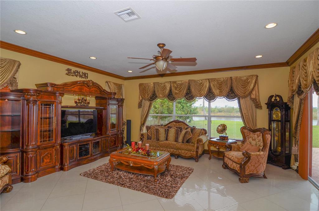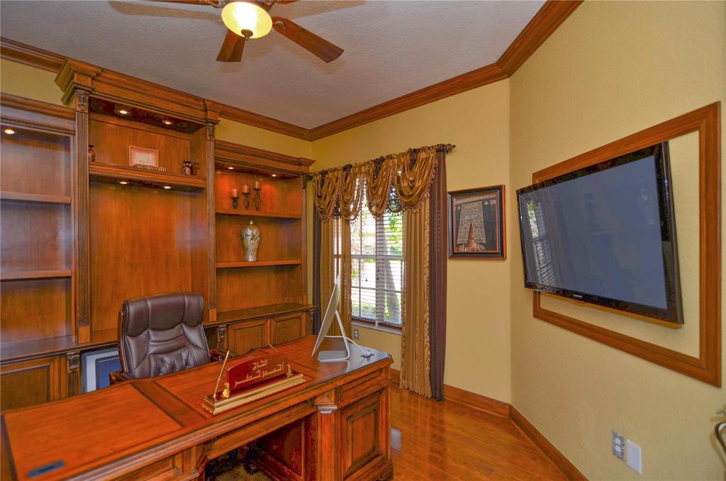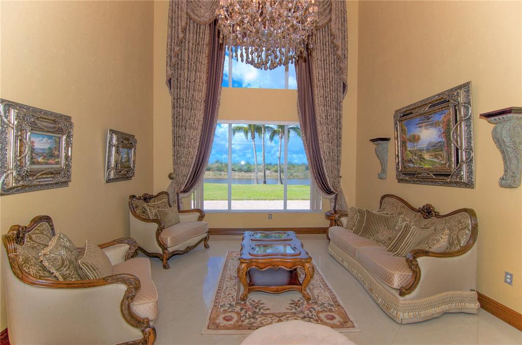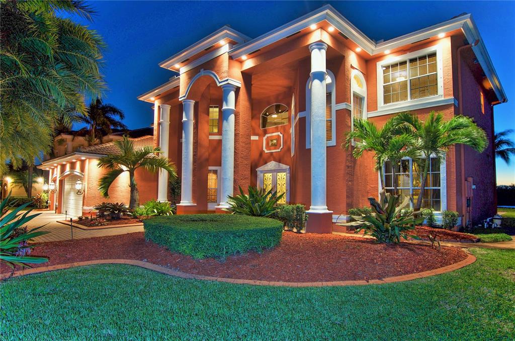 STUNNING TWO STORY HOME WITH IMPRESIVE ENTRANCE WITH WATER FOUNTAIN AND EXTENDED DRIVEWAY THAT CAN ACOMMODATE MORE THAN 12 CARS. LIVING ROOM AND DINNING ROOM WITH ELEGANT CHANDELIERS WORTH MORE THAN $30,000. GOURMET KITCHEN WITH CUSTOM MADE WOOD CABINETRY, GRANITE COUNTERTOPS, PORCELAIN AND WOODEN FLOORS, STAINLESS STEEL APPLIANCES WITH CENTER ISLAND. NEW WATER HEATER AND A/C UNITS, CROWN MOLDINGS. PRIVATE MASTER WITH BALCONY, SITTING AREA, ALONG WITH HIS AND HERS BATHROOMS. DOWNSTAIRS COMES WITH CUSTOM MADE WOODEN OFFICE AND 1 BEDROOM. HUGE BACKYARD WITH 23,748 SF LOT OVERLOOKING AMAZING SUNSETS, WATER VIEWS, AND PRESERVES.