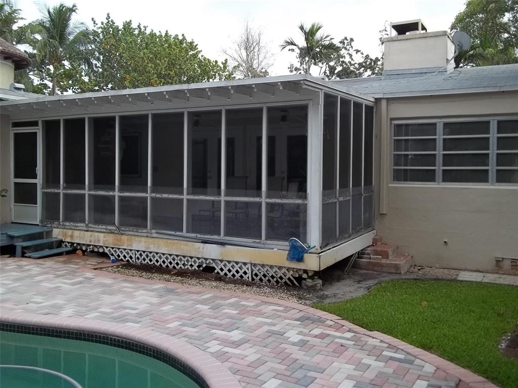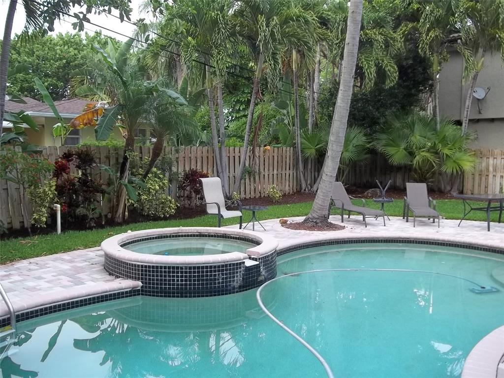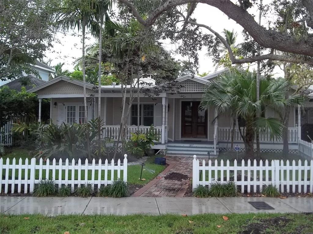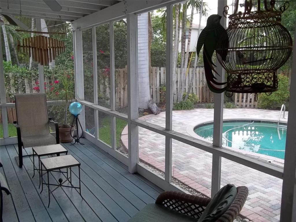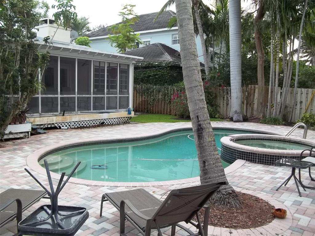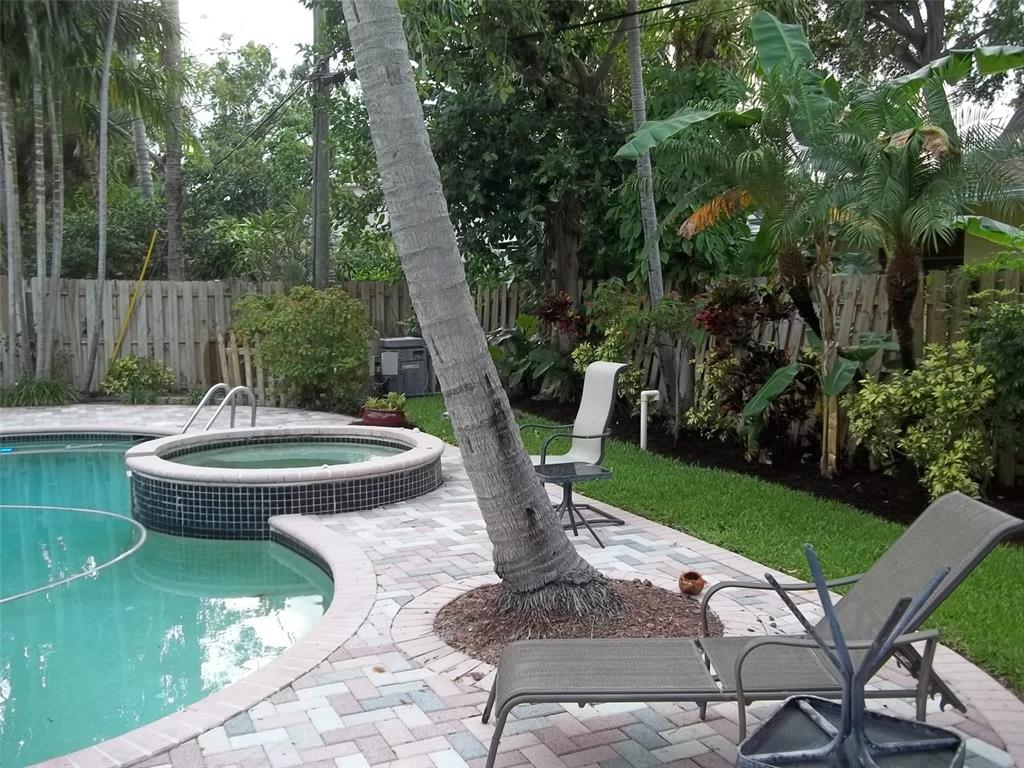 Charming Key West style home with hardwood floors throughout, vaulted ceilings and stone fireplace, Exterior features include large open pool and spa, fenced landscaped rear yard, screened rear porch, open front porch and carport. Home is located on a 9,125 square foot lot with mature trees and has a prestigious Rio Vista address. Home requires renovation and updating which is reflected in the listing price. Plans are available for a possible renovation and second floor addition. See attachments. To Show call listing agent Frank Swatscheno at 954 895-8521.