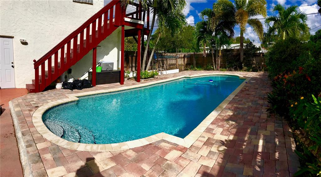 This charming home is one of the largest in Hollywood Hills! Upon entering the home you'll admire the beautifully remodeled kitchen with new stainless steel appliances. In addition to the living room and formal dining room, you will find three bedrooms downstairs. Upstairs is the bonus room that can be used as a fourth bedroom, office or extra den. This rare addition has its own central AC, 1/2 bath and balcony. This home also features a huge fenced patio offering total privacy. Great for outdoor entertaining or BBQs and topped off with a newly resurfaced salt water pool ready to cool you off. Other amenities include tile and laminate flooring downstairs with hardwood upstairs, circular driveway in the front and garage in the back, a solar water heater and a Nest thermostat.