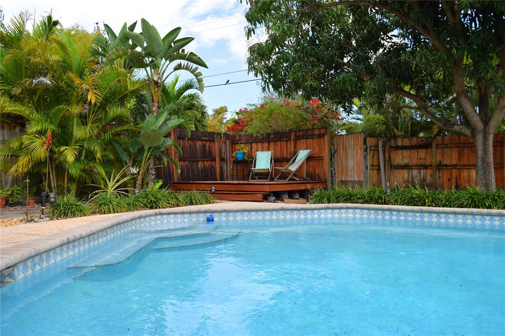Solar powered home in the heart of Hollywood Hills. 42 solar panels that produce electricity with a transferable warranty. Two large living spaces and 4 bedrooms with a split floorplan. This home has it all. Gas appliances, pool, wooden deck, covered patio space, sprinkler system, stainless appliances, tile roof, newer 4-ton AC, glass tile shower, termite warranty, hurricane shutters and more. All this in a great location on a quiet street convenient to Memorial Regional, major roadways, Tri-rail, shopping, dining and houses of worship. *rain-barrel does not convey
