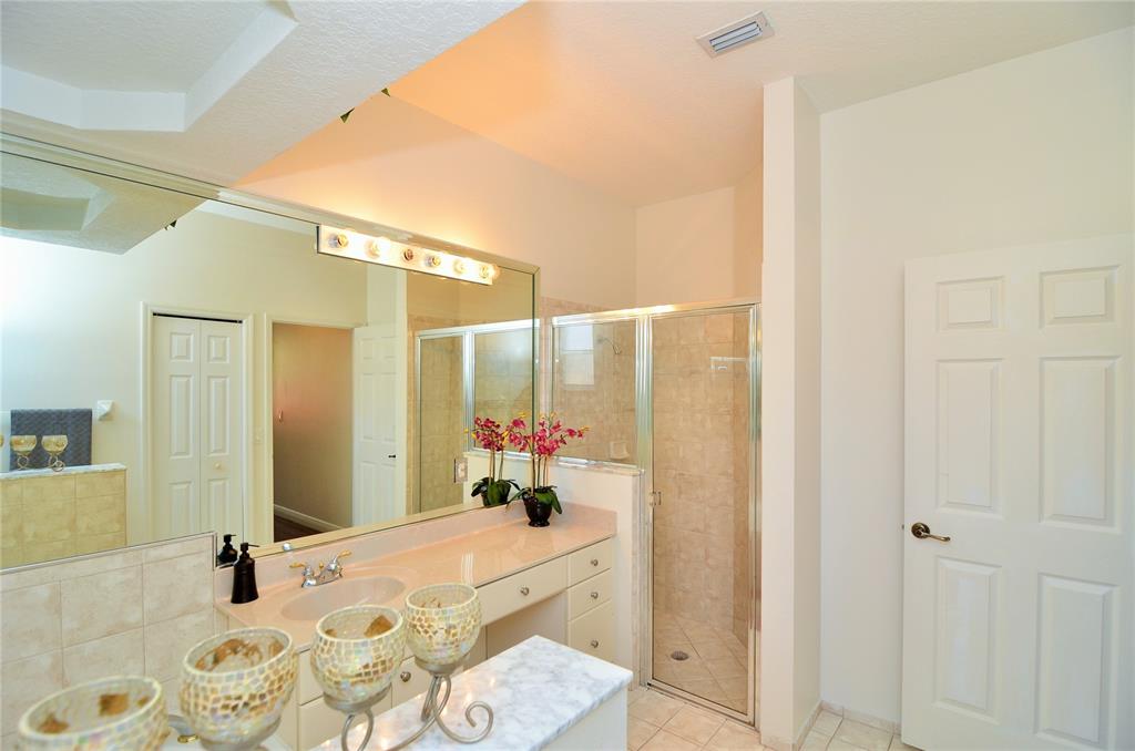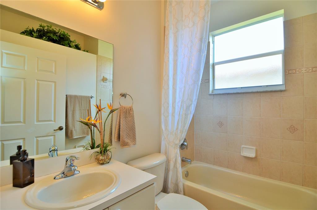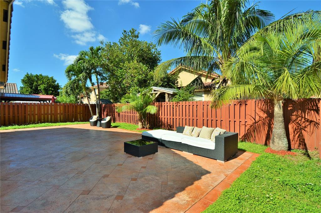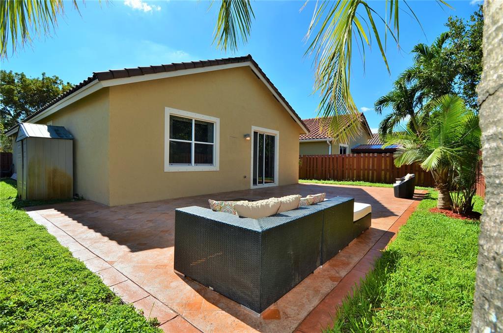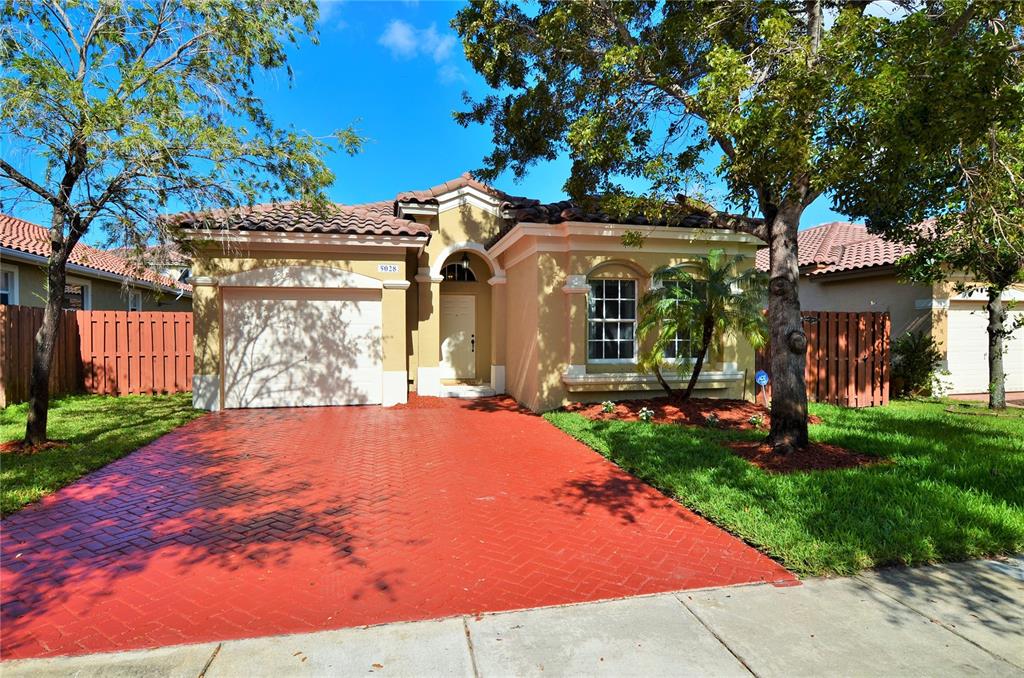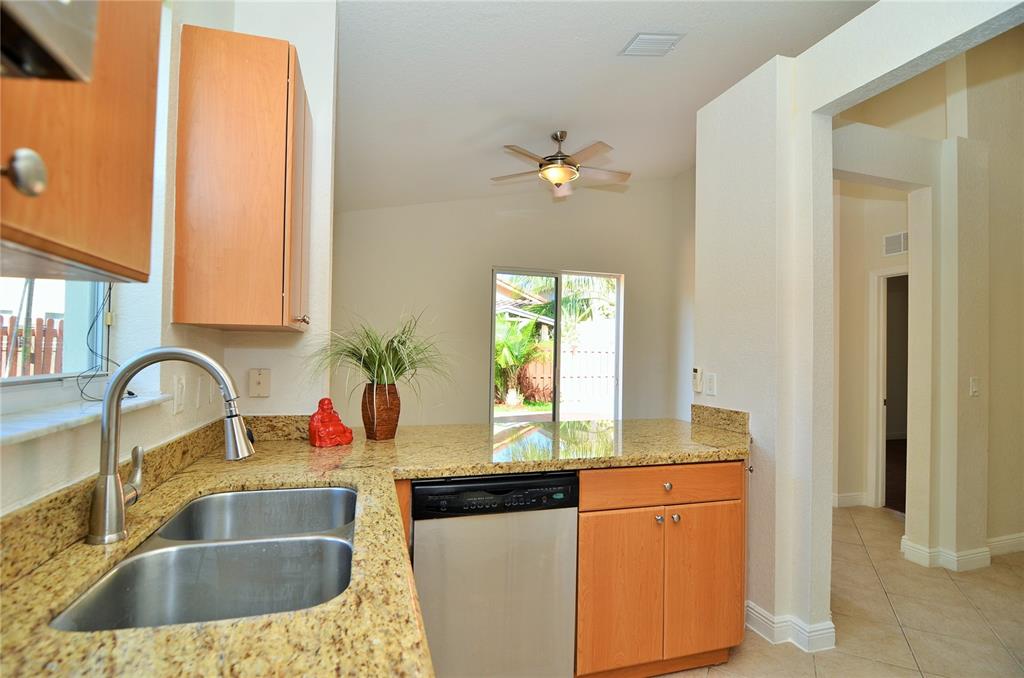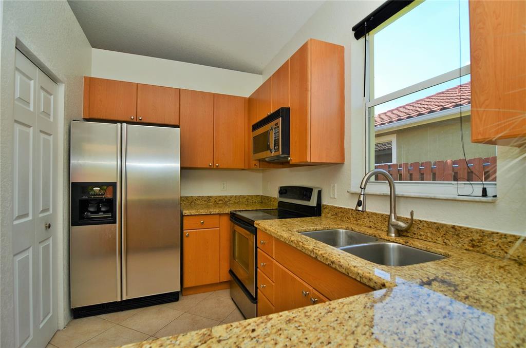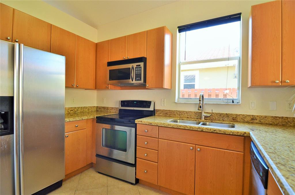 Beautiful, bright, well maintained one story home with vaulted ceilings and split floor plan. Upgraded kitchen with granite countertops, stainless steel appliances. Large master bathroom with soaker tub and large shower, master has a walk in closet. Upgraded large diagonally laid tile in main areas and laminate wood floors in all bedrooms. Enjoy the backyard with an oversized lot and extended paved patio, great for entertainment!. Freshly painted interior, exterior, garage and driveway. Private low maintenance fenced backyard, kids playground located on the same block. Private gated community with 2 pool and gym, 8 playgrounds. Close to shopping, restaurants, 1-75 and turnpike. Move in ready!