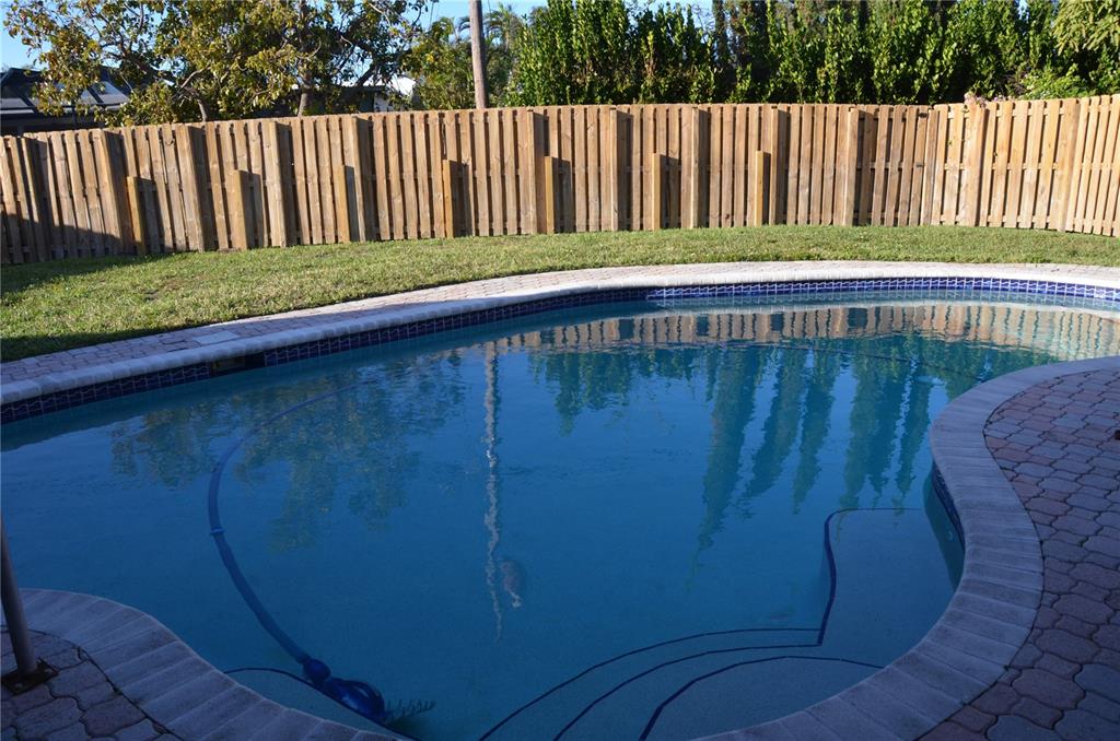 You'll love this updated, spacious 3 bedroom 2 bath home in Hollywood Hills. Many upgrades including kitchen with wood cabinets and Corian counter tops. Ceramic tile throughout main house and laminate flooring in bedrooms. Separate laundry room with Kenmore front loading washer and dryer. New 5-ton a/c will keep you cool in the summer or splash around in the large 17 x 30 pool surrounded by brick pavers, while you BBQ and entertain your friends in the large backyard with wood fence for privacy. This home is close to the beach and everything else Hollywood has to offer.