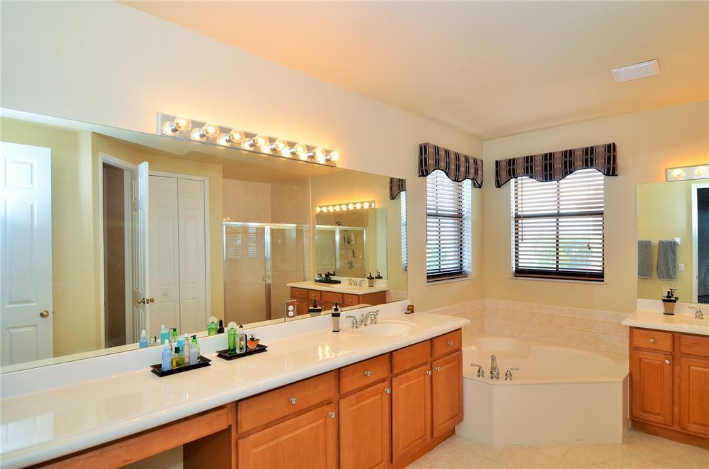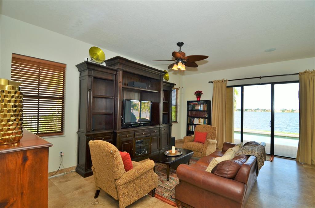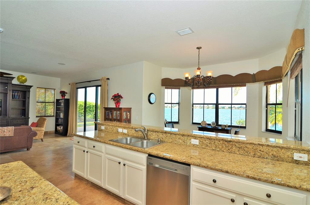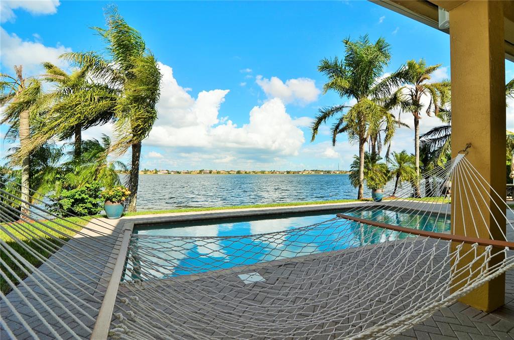Magnificent 5 bed, 4.5 bath home with stunning endless lake views, marble and laminate wood floors throughout, 3 bedroom suites each with private bathrooms, master bed upstairs and 1 mini suite on the first floor. Gourmet kitchen with wood cabinetry, double oven, granite countertops and stainless steel appliances. Freshly painted, large family room, new water heater, high ceilings and dual side entry iron staircase. Enjoy the backyard with beautiful sunsets, salt system pool, and gorgeous water views.