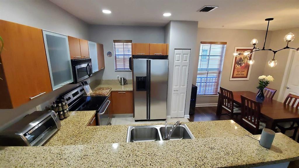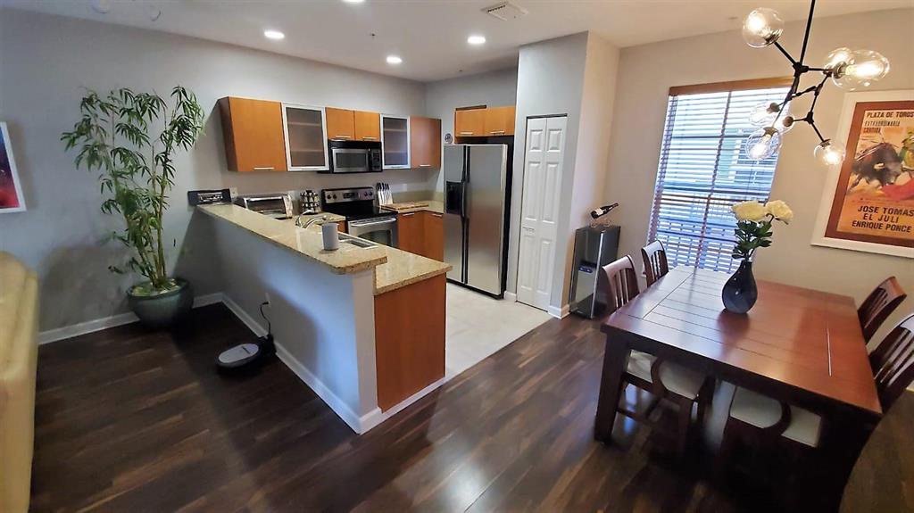 Beautiful, Very Bright & Spotless Mediterranean Tri-Level Style Townhouse in intimate Gated Community. Stainless steel appliances, granite counter tops, Wood floors thru out living areas. Master bedroom has huge walk in closet and sliders onto small balcony. Light and bright. Second bedroom is also an on suite with walk in closet. 2 oversized garages can fit your cars and all your other hobbies. Large laundry room with wash basin. This unit has 5 guest parking spots right in front. Great unit for entertaining. The private community pool is close to unit which makes it very convenient. Walking distance to shops and restaurants. Very close to downtown and all famous beaches. Don;t miss this opportunity to live well.