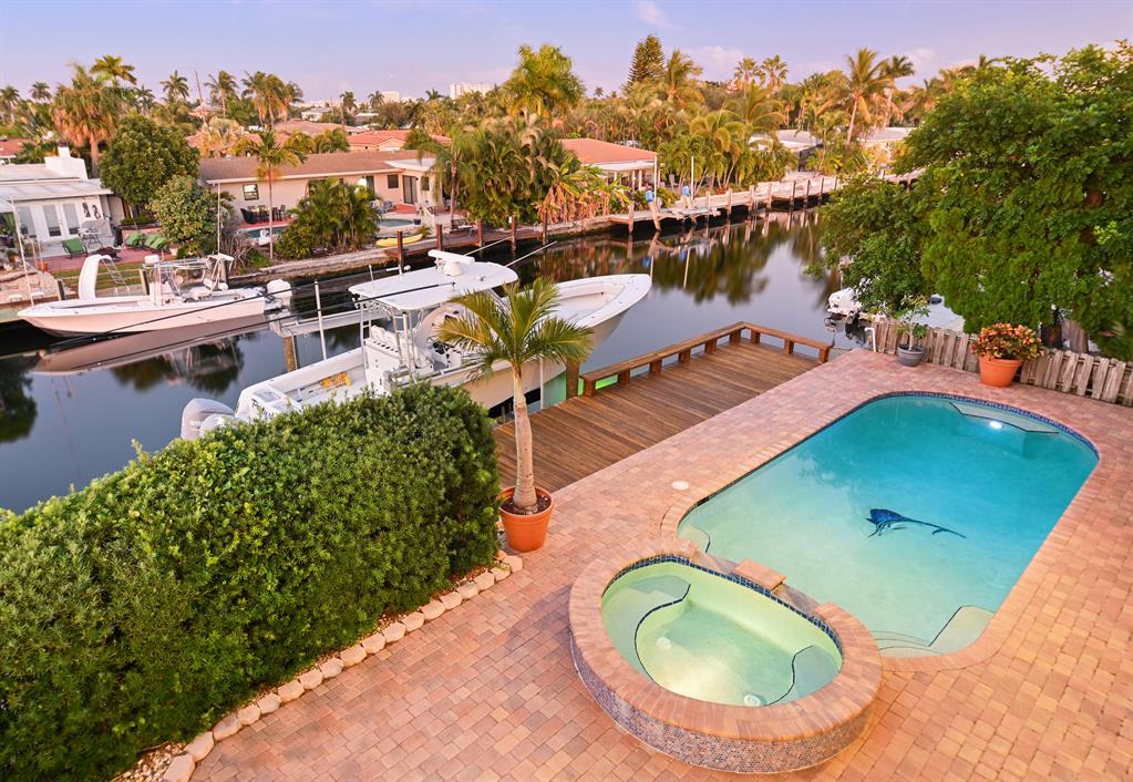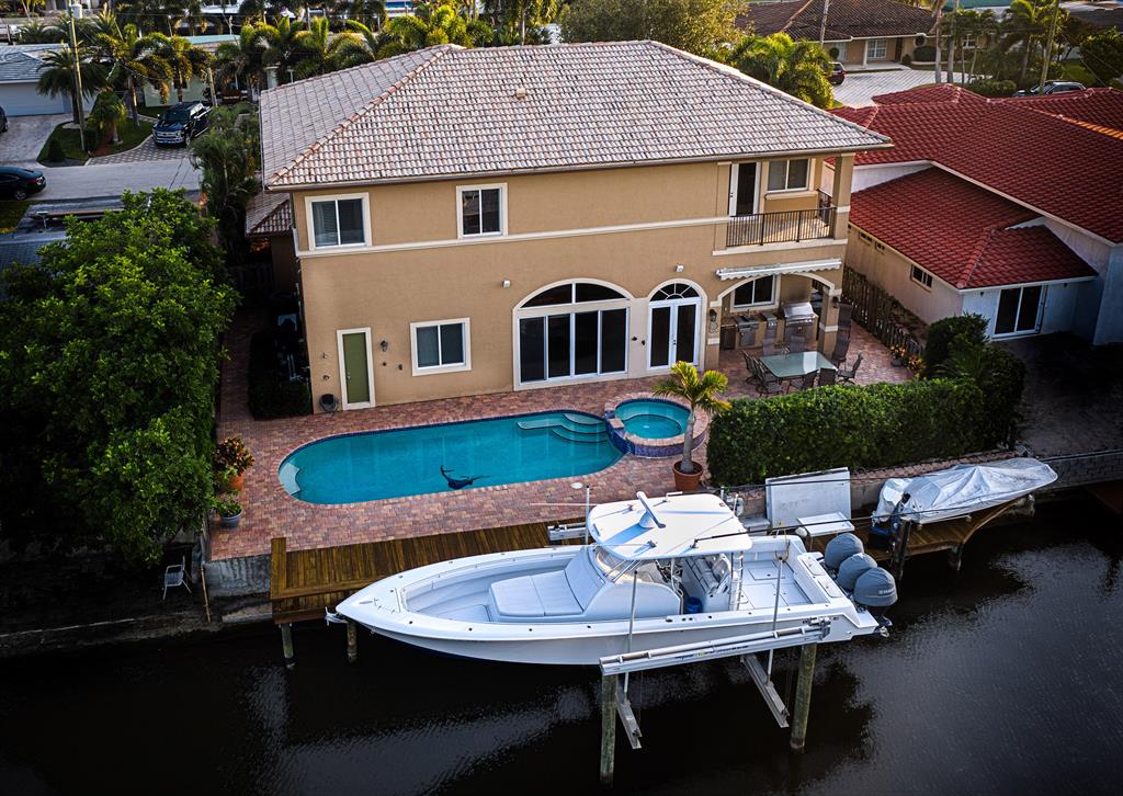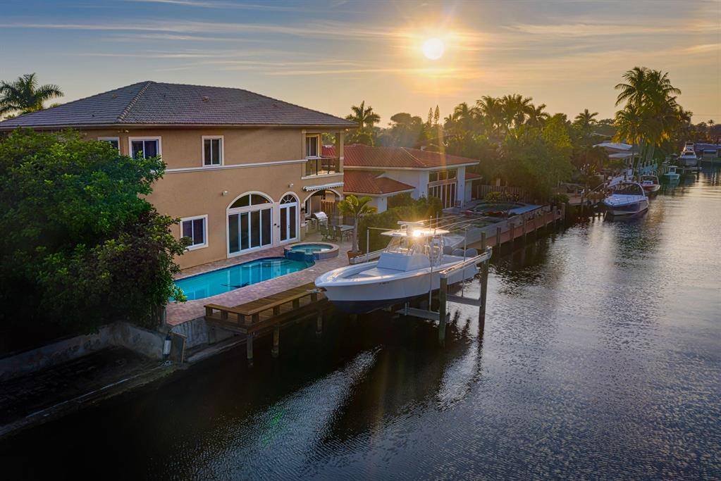Fabulous two-story custom waterfront home built in 2007 in Pompano Isles.6 bedrooms 4.5 bathrooms plus an office. 10 minutes to the Hillsboro Inlet with no fixed bridges. Enter the 22' ceiling foyer, 12' first floor, 10' second floor .The great room opens to large entertaining area, gourmet kitchen & dining. Over 3100 ft.A living space. All high impact glass, 2 A/C units, 2+ car garage, 5 of the 6 bedrooms have walk-in closets. Beautiful staircase off the foyer which leads to a great sitting or TV loft area. Brazilian hardwood floors throughout the second floor.The master suite is on one side and has a private balcony, direct water view. Huge master his/her closets with tons of storage and spacious master bathroom with spa tub.Three large bedrooms & two more bathrooms complete second..