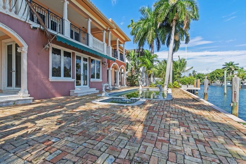 Stunning 6 Bedroom two story Mediterranean Waterfront Estate Located in Ft Lauderdale just one off the point lot. Enjoy morning sunrises from an East facing master suite which features a jacuzzi tub, separate custom shower, walk in closets and wet bar. Perfectly located close to the Beach just off Las Olas in Downtown Ft Lauderdale. This property is boaters dream with 100 feet of waterfront, Deepwater dockage, No fixed Bridges, and close to the inlet. A Must See Property.