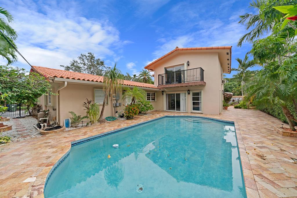 Spacious Coral Ridge 4BR/3BA pool home with open floor plan tucked away in tropical landscaping. A great home for entertaining with custom built bar with abundant shelving centrally located in the home and adjacent to living area that opens to pool. 4th bedroom upstairs is more like a suite with a large living area, bedroom and bath with balcony overlooking pool. Fantastic backyard providing complete privacy along with multiple areas to enjoy the outdoors all fully pavered and landscaped! Plenty of parking with oversized and circular driveway along with 2 car garage. Very well maintained home with long time owner.