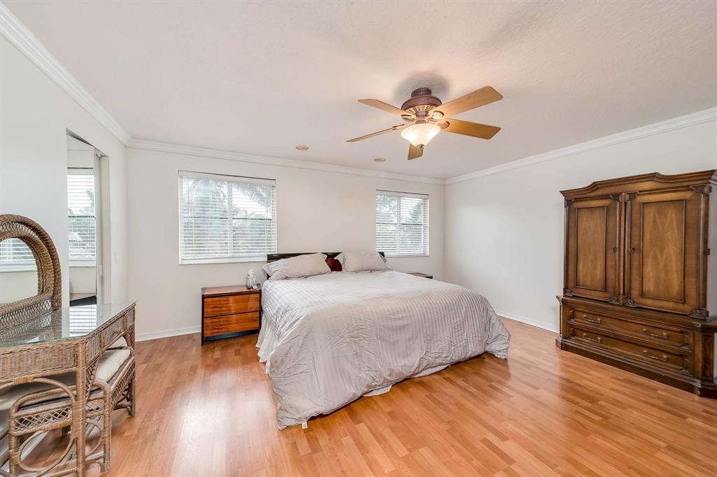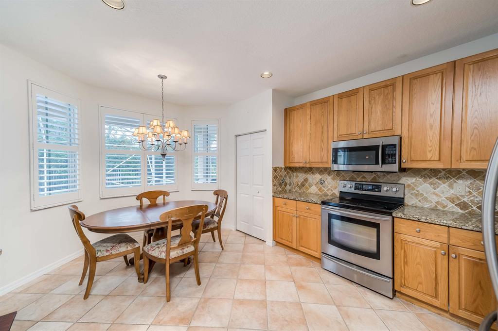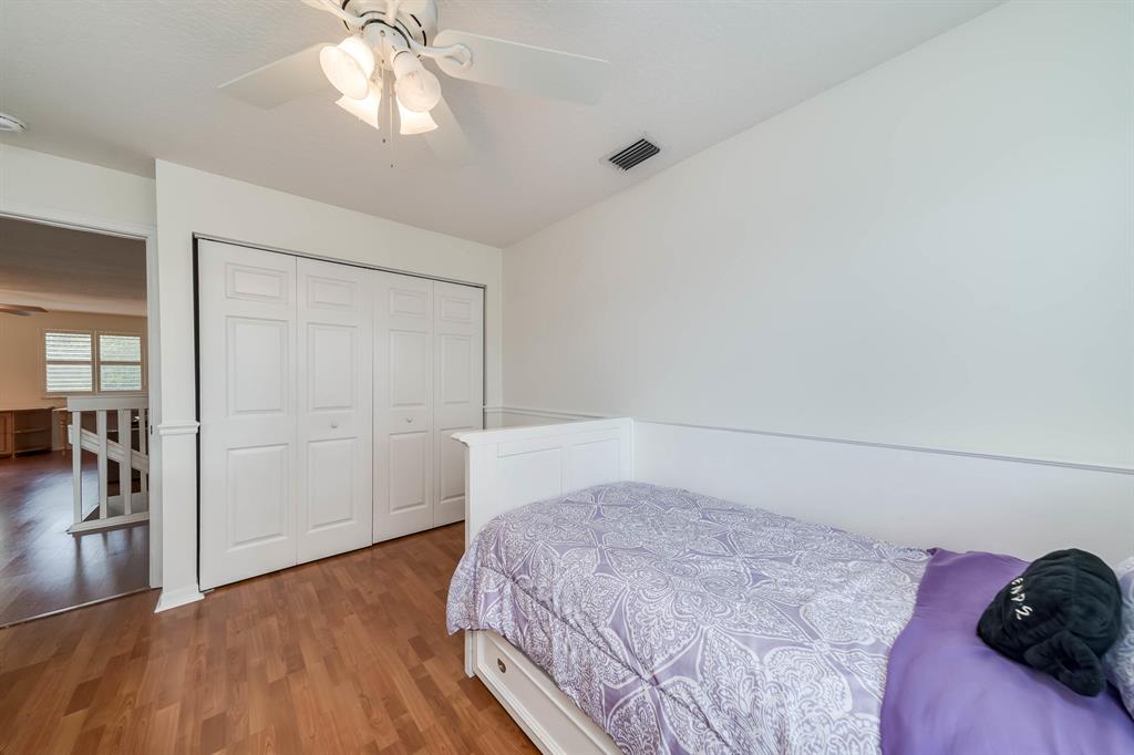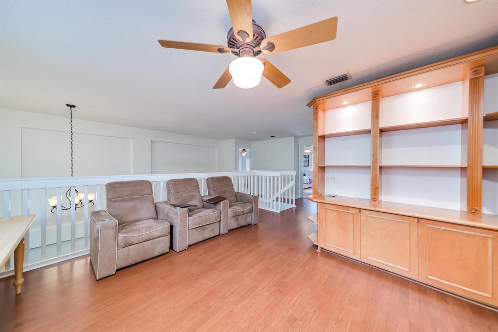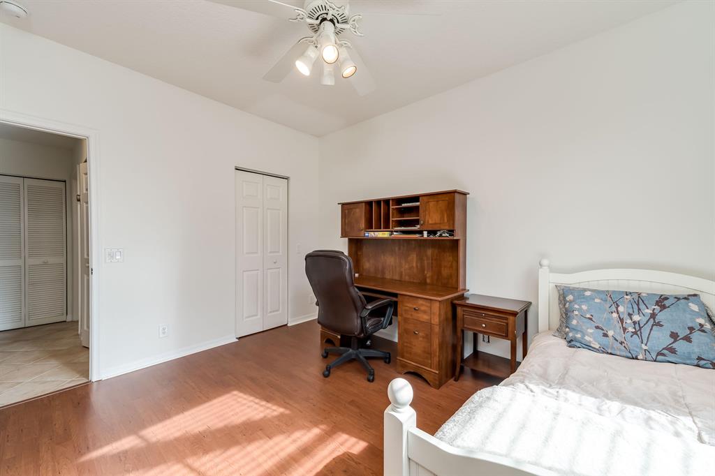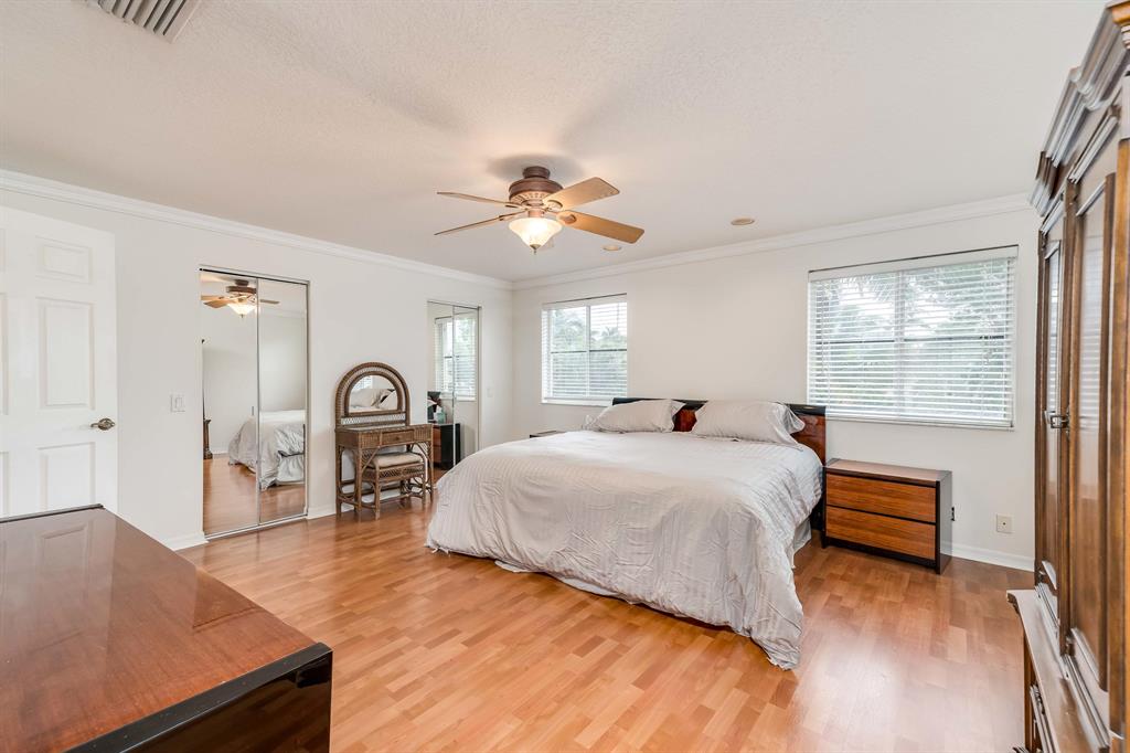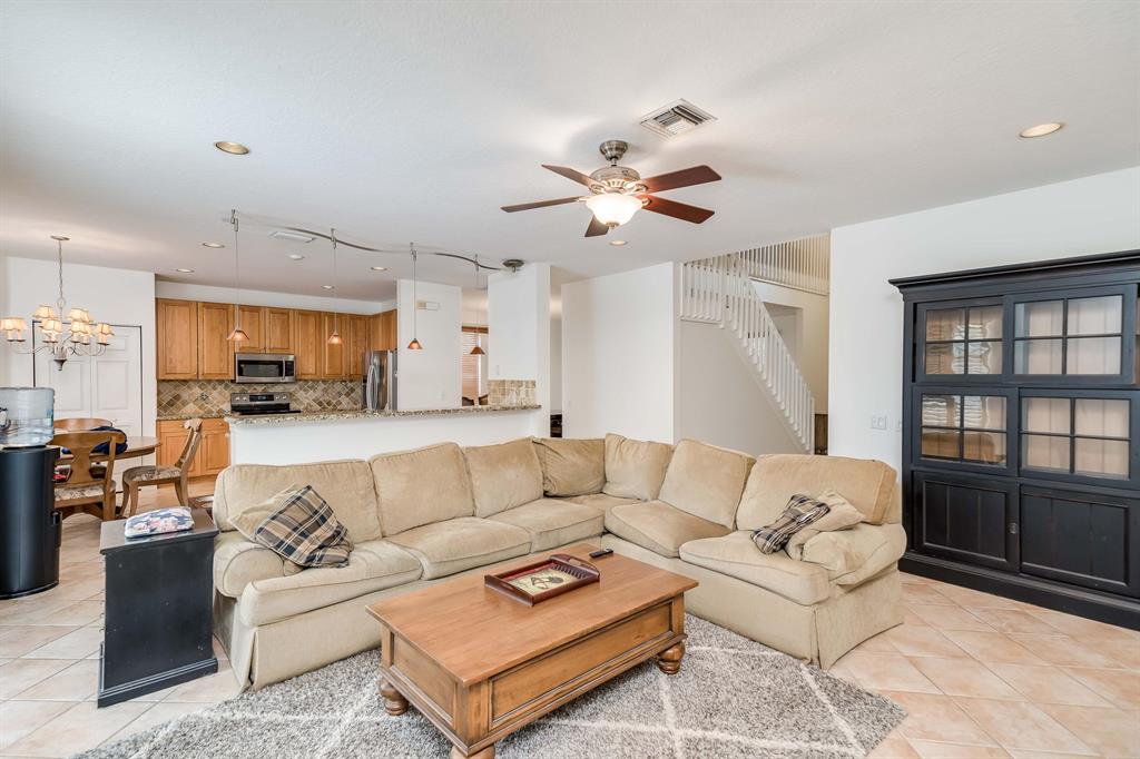 Gorgeous and meticulously kept 4BR 3BA home, with an open modern floor plan in the highly sought after gated community of The Ridges. Natural sunlight floods the home with soaring ceilings and oversized windows. This freshly painted home has boundless upgrades. The Chef's Kitchen is appointed with beautiful 42'' wood cabinets and top of the line stainless appliances. There is a large granite topped breakfast bar plus custom tumbled marble backsplash and wall accents. The eat-in kitchen is complimented with Plantation shutters that carry out to the family room. The large patio and spa are screened in. Custom laminate plank like floors are on the stairs and throughout the 2nd floor. Crown moldings compliment the guest rooms. 3 BR's with loft upstairs and one bedroom/office downstairs.