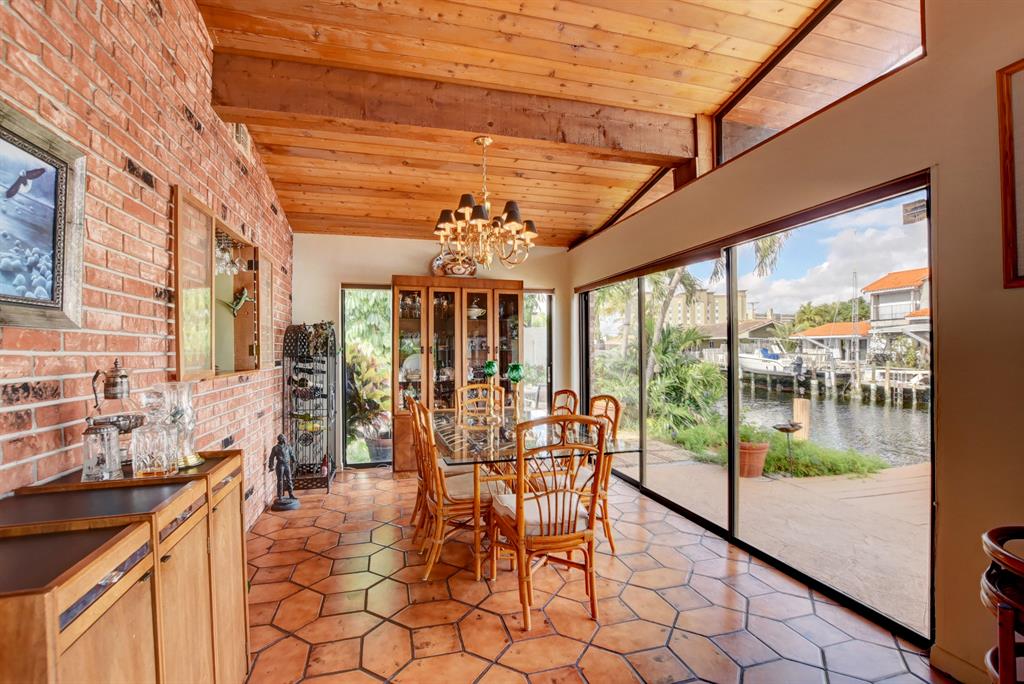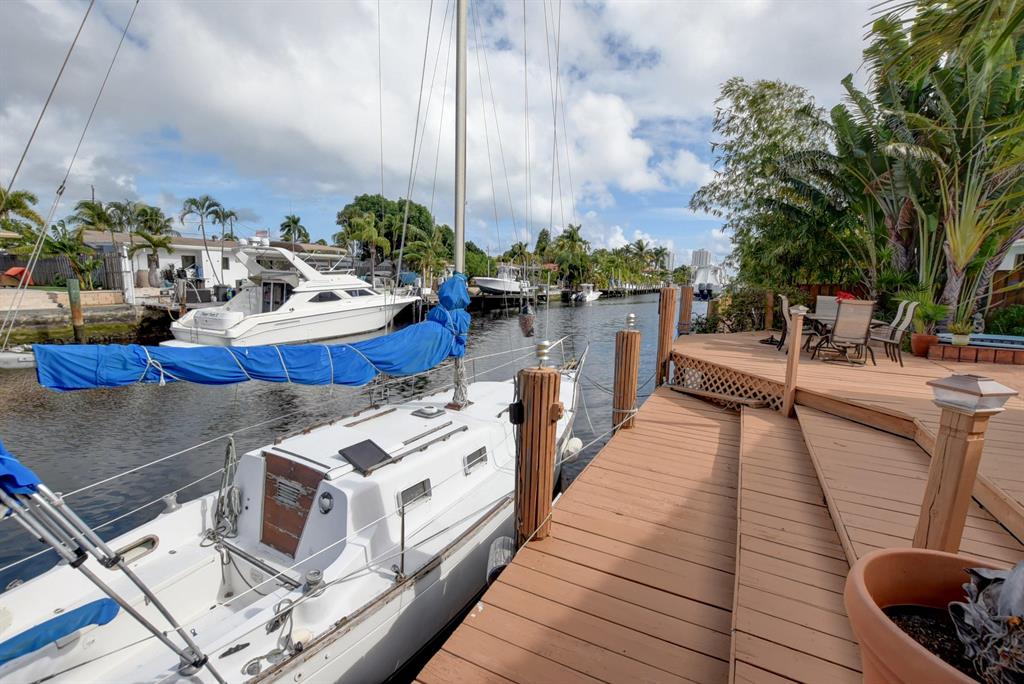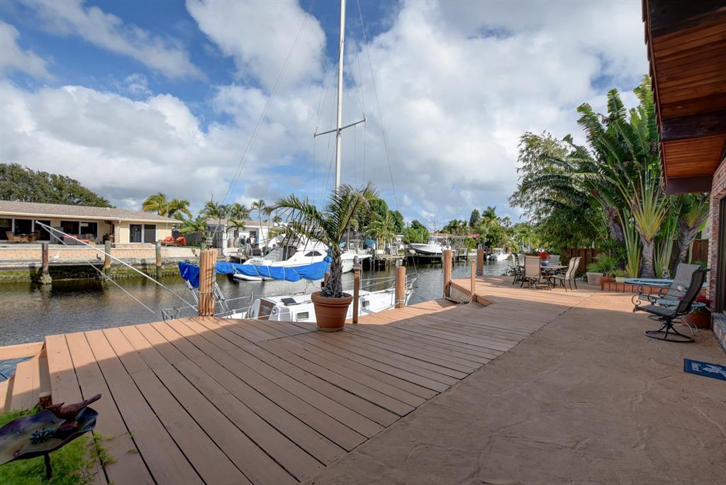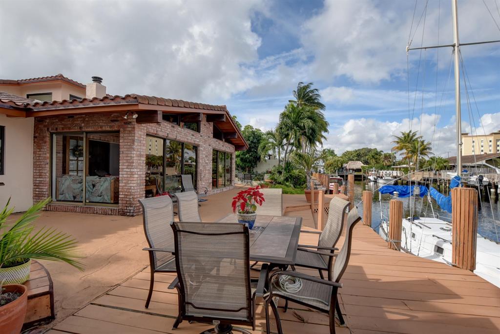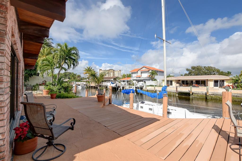 Highly desirable Pompano Isles deepwater front home that has been well maintained and updated over the years. This three bedroom, three bath, two car garage house features include impact windows and storm panels; replaced s-tile roof; open, light and bright Florida room with vaulted, pecky cedar ceilings and sliders overlooking the waterway and spa. The eat-in kitchen offers oak cabinetry and a large walk-in pantry. The large open living room provides views of the water and has a cozy fireplace. Retreat upstairs to the large master bedroom suite. Enjoy the outdoor balcony in the evenings. The master bath provides a large roman tub, dual sinks and seperate shower. This property is minutes to the Hillsboro Inlet, excellent boating, fishing and diving with no fixed bridges.