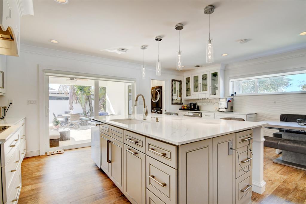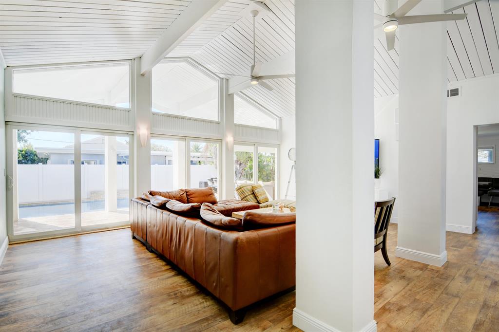 Welcome Home! 5/3 exquisitely remodeled w/designer enhanced touches throughout. Beautiful, vaulted wood ceilings greet you as you walk through impact double doors. 3 sets of impact sliders allow fantastic views to new 15x30 salt water pool w/waterfall and travertine patio , New Hot Tub. Covered Patio is practically entire length of home! Huge 19x19 Kitchen is a Cook's dream! Grand quartz island, Subzero fridge, Jenn-Aire oven/microwave and induction stove. Also a pot filler! Cabinets, storage galore! Bathrooms equipped w/bidet TOTO toilets and stunning showers. Oversized Master ensuite w/enormous walk-in closet, sitting area w/impact slider to screened patio. New Dual A/C, Nest thermostat/camera system 1.5 miles to beach!!!