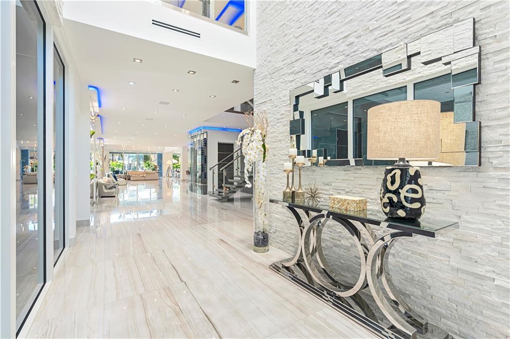 Exquisite modern estate built in 2016 on an oversized lot w/80' of deep water frontage, just moments by boat to the Intracoastal Waterway. All concrete & steel construction. Smart home features Lutron system, cameras, sound system, alarm & intercom. Vast, open kitchen w/oversized island, Subzero & Wolf appliances. elevator wine coolers, office, gym, cigar room, 2nd floor loft and 2 laundry rooms. Accent lighting throughout. Resort-style pool w/waterfall. Fantastic Las Olas ~ Seven Isles location.