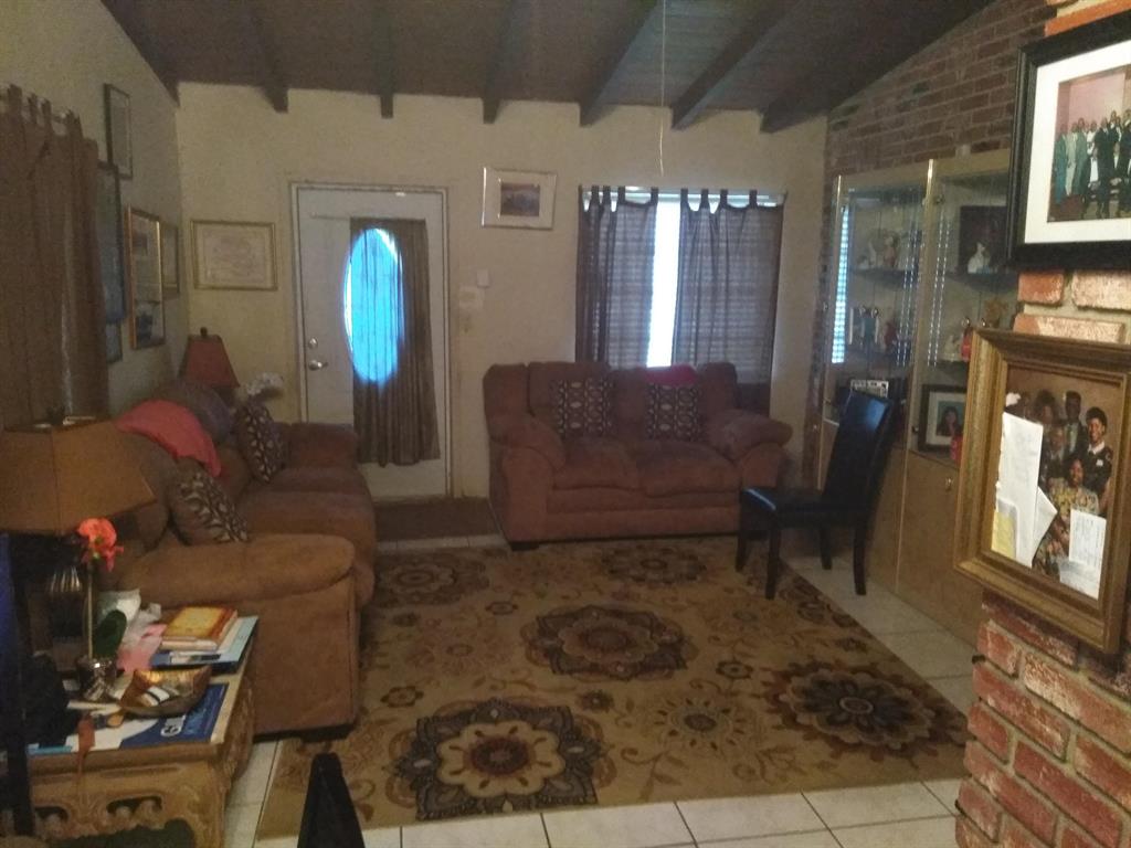 property needs TLC Great potential Circular Drive space to park 12 cars Large rear yard Wood beamed and vaulted ceilings through out the interior Exposed brick walls in the living area Three beds two baths plus Florida room