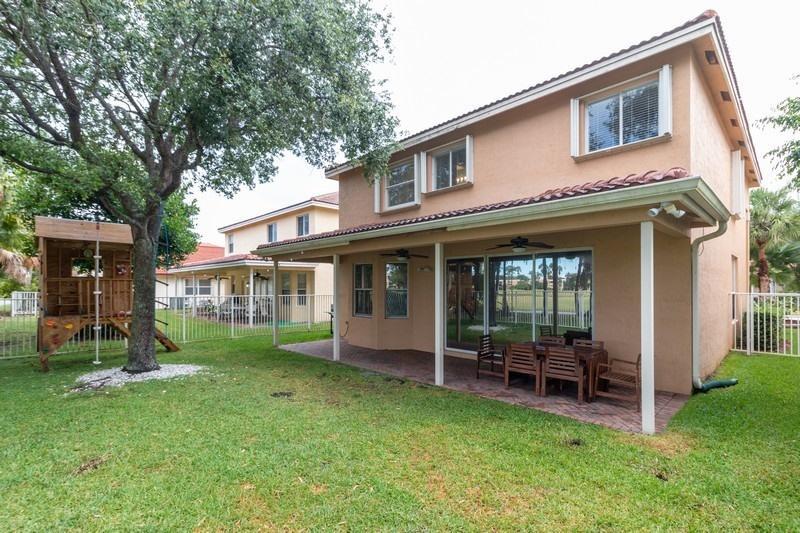 Blink and it will be gone! No other house in Weston on a golf course and lake views, 4 bedrooms, 3.5 bathrooms, over 2,500 sq.ft of living space for under $500,000. All bedrooms and three full bathrooms are located upstairs, plus a convenient loft and a Den/Office space. All entertaining areas downstairs, featuring an open floor plan with amazing golf course views As soon as you walk into the house. Fully renovated kitchen with S/S appliances. A/C replaced in 2016. Water heater just 5 months old. Large, fenced-in backyard and covered patio area. Convenient upstairs laundry room with newer high capacity washer and dryer. Accordion shutters upstairs, panel shutters downstairs. Very clean and well mantained. Access to the Bonaventure Town Center facilities. Very low HOA fees. Welcome home !