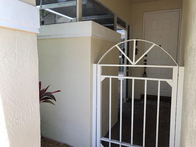 Remarkable opportunity in lush gated community 1 mile from the beach. Extra large townhouse on corner lot, great condition. Move in as is or make it your own with a renovation vision. Beautiful plantation shutters on every window and sliding door, hurricane shutters. Private screened in patio with pavers perfect for outddor entertaining, extra balcony upstairs. Lots of windows provide natural light and high ceilings create a spacious open feel. Quiet, walkable community in natural setting with lots of amenities. A great value in the perfect location. Welcome home!