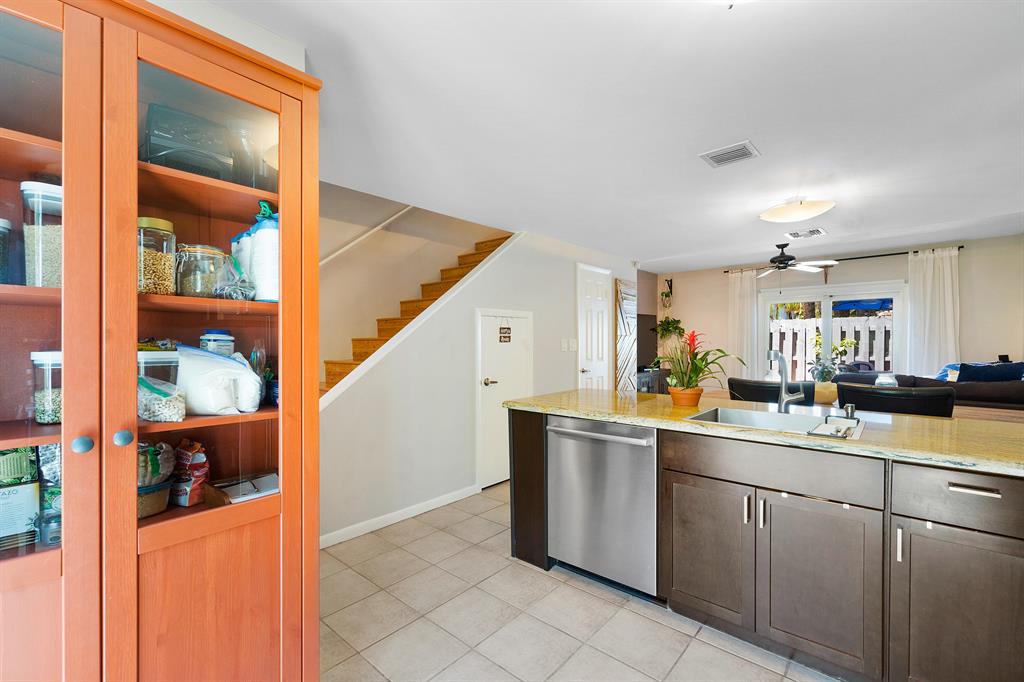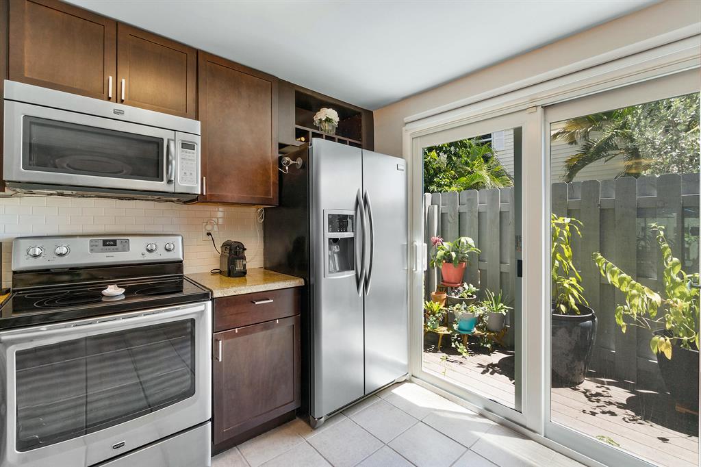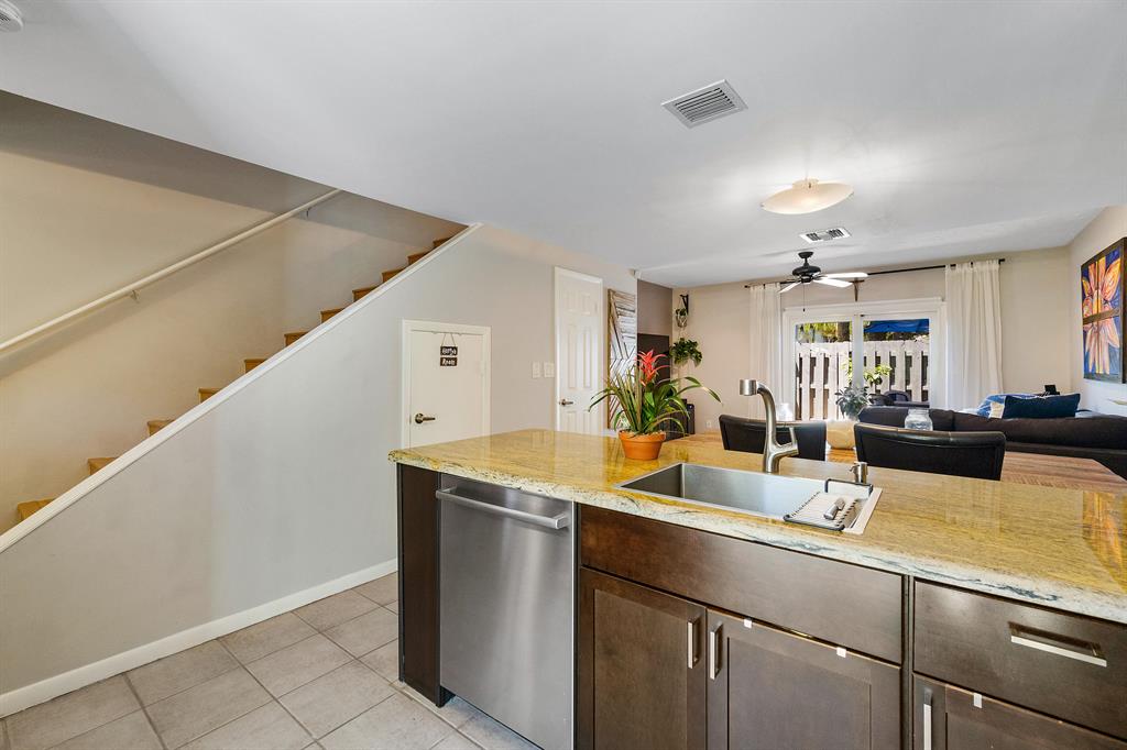 Modern, sleek and stylish 2 bed / 1.5 bath townhome located in the quaint waterfront community of Edgewater in Fort Lauderdale. This one of a kind residence is located right off of community pool and features new roof, impact doors and windows, newer water heater, renovated kitchen with gorgeous granite countertops, rich dark wood cabinetry, subway tile backsplash, stainless steel appliances and premium flush mount sink. Totally upgraded bathroom features exceptional designer finishes from custom crown molding and recessed lighting to stone and mosaic tile accents, glass shower and contemporary vanity. Other notable updates you will love include open floor plan, installed closeting, boutique light fixtures, private outdoor space with new marble pavers, new fencing. SEE SUPPLEMENT.