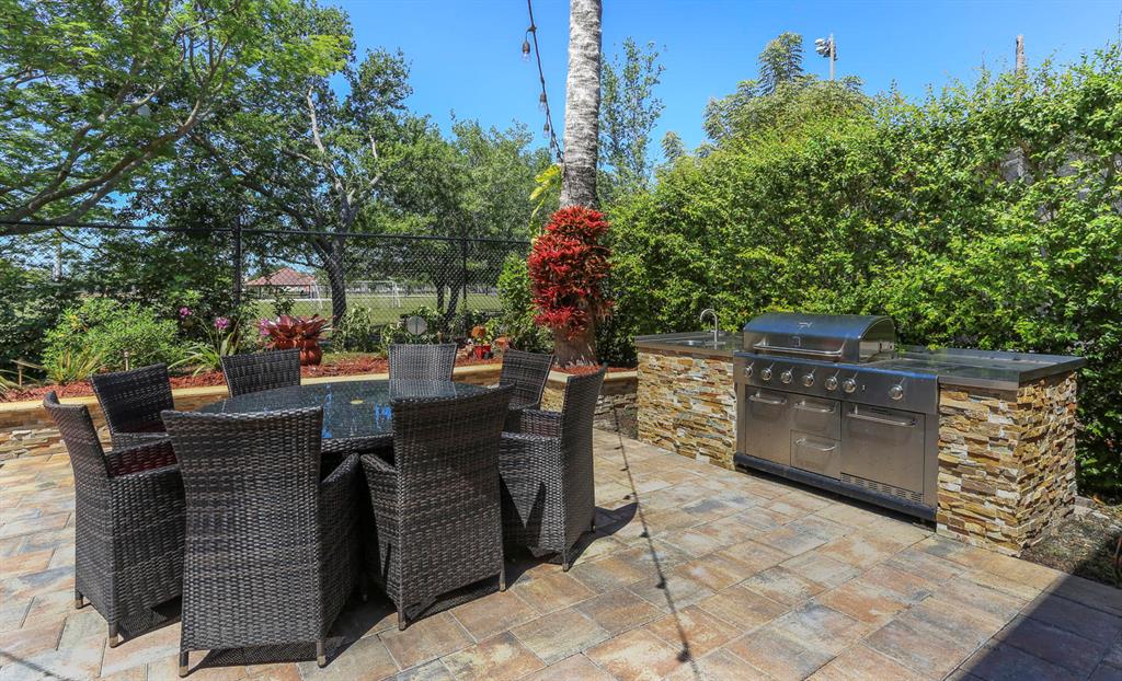 This home is an entertainers delight! Executive home in West Miramar is offering an extended patio with outdoor kitchen and fire pit, impeccable landscaping, fenced yard, updated kitchen, and gorgeous modern bathrooms throughout the home. This large 5 bed/4 bath Silver Shores home boasts a custom wrought iron staircase, wood flooring throughout 2nd floor, 1st floor has ceramic tile with marble inserts, as well as a full marble bathroom on the 1st floor, 4 walk-in closets, dedicated laundry room, and accordion shutters on the 2nd floor. The master bedroom is exceptional with almost 400 sq. feet of living space, 2-walk-in closets, his and her bathroom with spa tub, vanity, and oversized shower, as well as amazing views of Silver Shores Park!