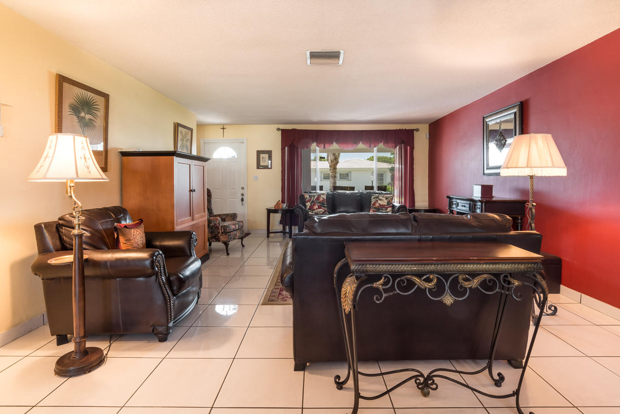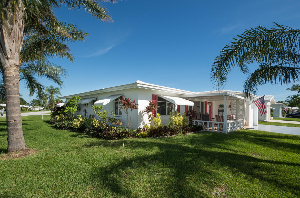 Stunning home in lovely, friendly Leisureville! Free golf for owners on a 9 hole executive golf course. HOA fee includes lawn care, water, sewer, outside house painting, roof cleaning, all community amenities. Includes 2 club houses, 2 heated pools & all activities. Free curtesy bus also runs daily.Very large 3286 sq ft. corner lot has wrap around landscaping. NO LAND LEASE! New roof in 2014. Entertaining Front Porch. Double wide paved driveway. Hurricane rated garage door & opener, Beautiful 24'' Tile Flooring. Pets OK. Since January 2015 the following have been purchased new: air conditioner/air handler, washer/dryer, stove, refrigerator, disposal, water heater and ADT security system, hurricane impact glass windows. Don't miss this great buy! Drapes/curtains not included