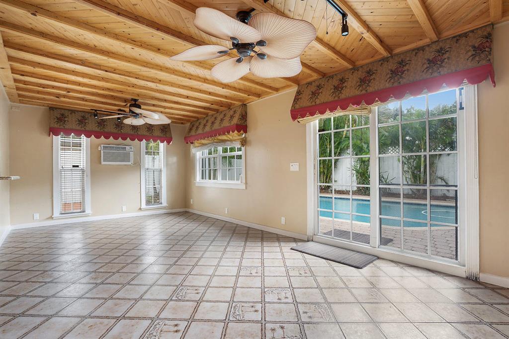 This is the home you have been looking for! 3 bdrms, 2 baths, 1 car garage and pool. Open floor plan leads out to a tropical pool area. Remodeled kitchen includes granite counters & stone backsplash. Upgraded bathrms. Ceramic tile throughout. Custom window treatments, plantation shutters, crown molding, Nest thermostat, Ring doorbell and keyless entry front door lock are just a few of the interior features..Impact windows & hurricane shutters. Hurricane rated garage door. Outdoor living space has mature, tropical landscaping. A granite outdoor bar & large paver patio makes this a perfect home for outdoor entertaining. Interior & exterior painted 1 1/2 yrs. ago. Very desirable Palm Aire Village. No HOA!