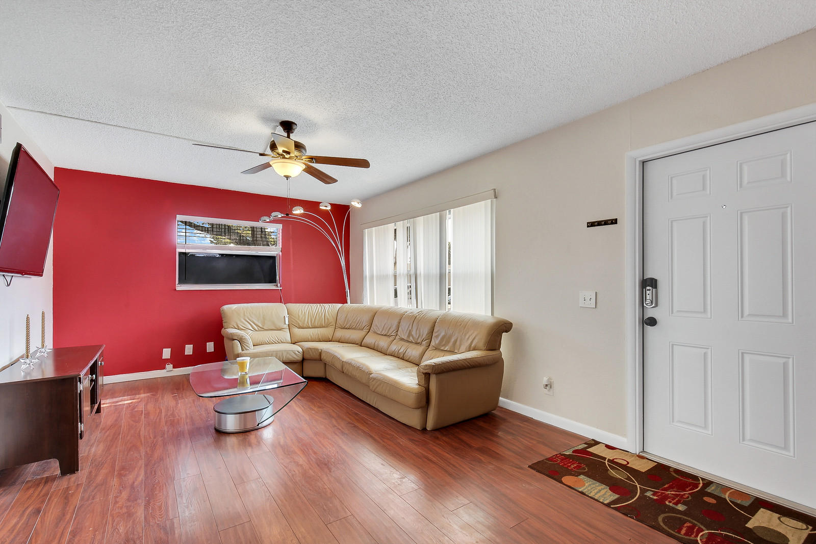 You must see this beautiful townhouse. A large 3/2 1/2 corner unit with extra windows. This unit includes 2 updated bathrooms, laminate flooring in all living areas, kitchen floor has been redone and newer appliances. There are also accordion shutters upstairs and all doors in house are less then 2 years old. The patio upstairs includes a tool room which owners can take out upon request. HOA covers exterior as well as roof and pest control. Community offers a large pool, basketball and tennis court and playground. Close to 595, Turnpike as well as schools and colleges. This unit has it all so schedule your showing today!