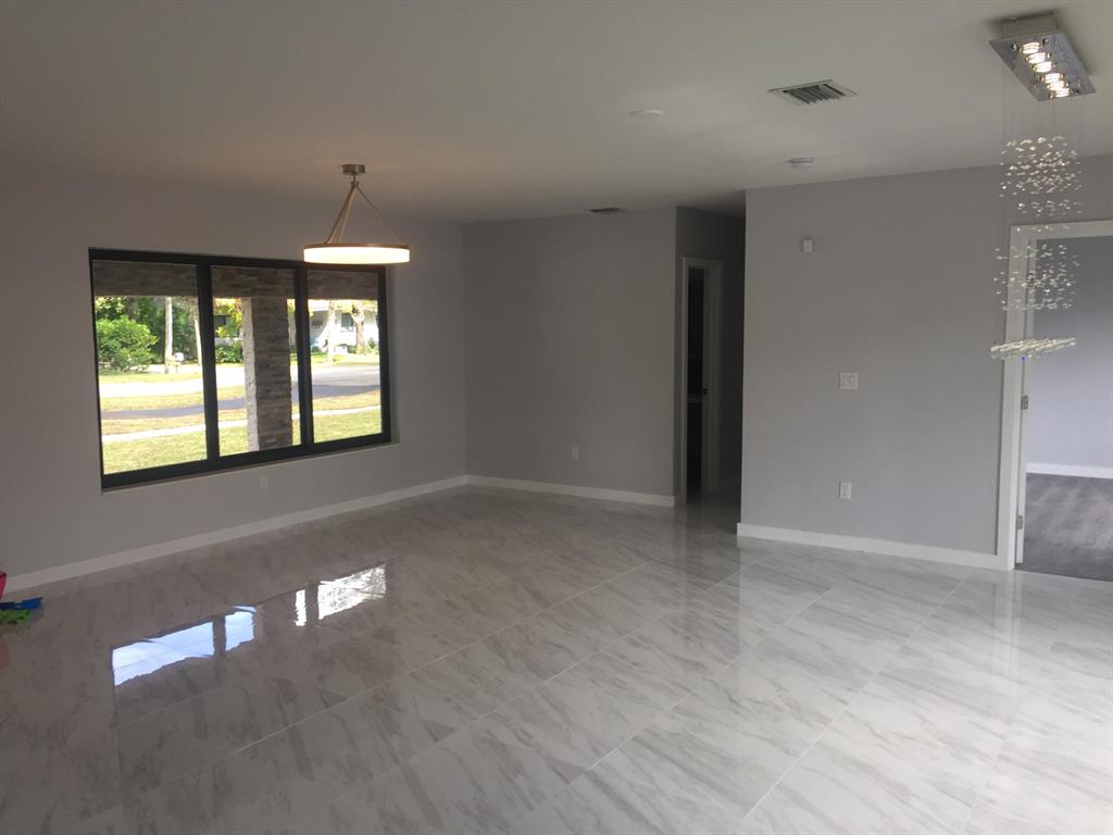 Beautifully remolded with a modern interior. New high end tile throughout and wood floors in the bedrooms. The kitchen is brand new and features granite counters tops with an island and stainless steel Samsung appliances. Bathrooms are completely remolded. New electrical and new plumbing in kitchen and bathrooms. Brand new hurricane windows and three doors. New paint inside and out, Corner lot. Two car garage with new floor. Laundry lot includes new Samsung W/D. The house is stunning and priced aggressively.