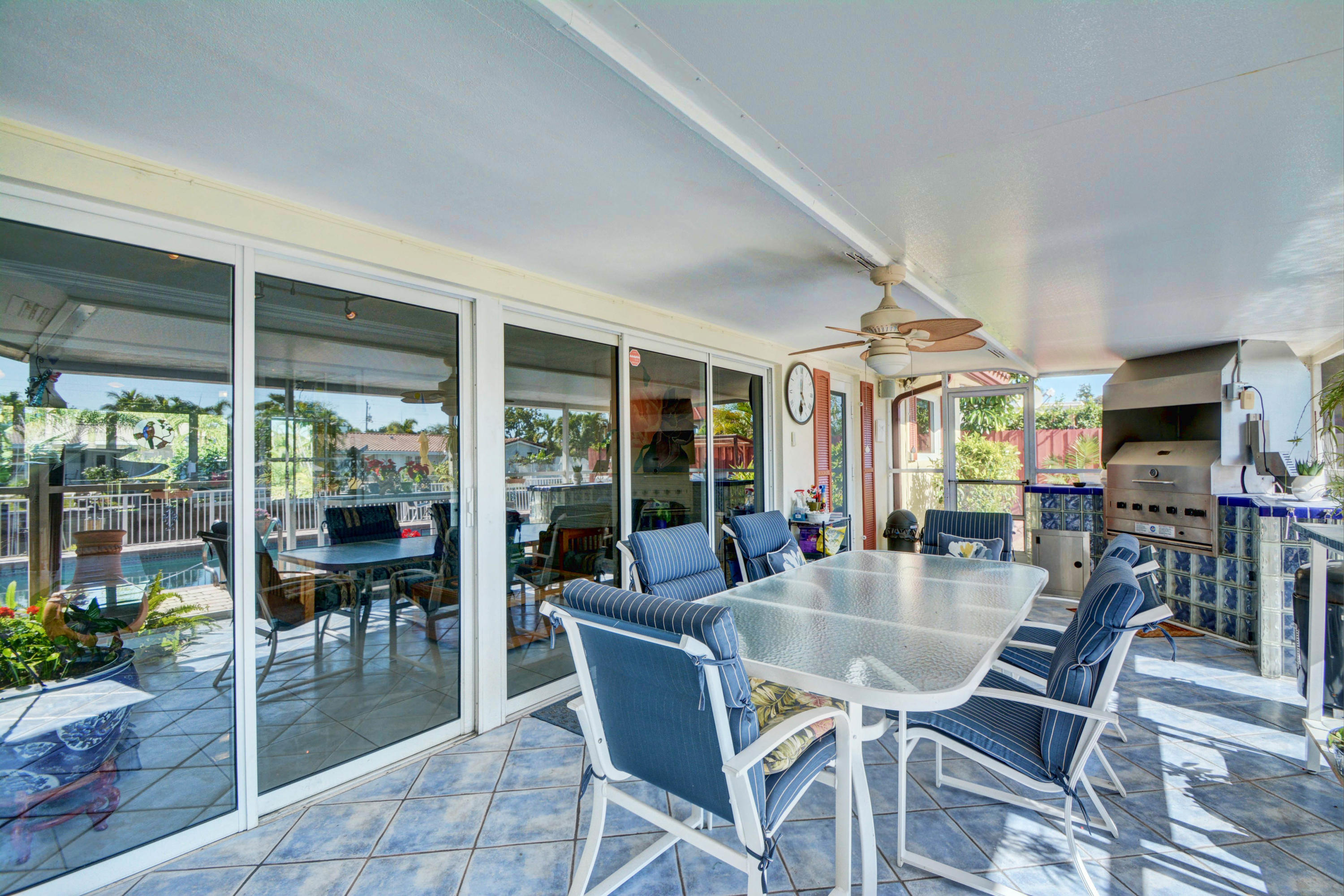 Ocean Access! Feel right at home in this cozy waterfront home with ocean access. You'll love the open floor plan and great room/family room with fireplace and bay windows. Enjoy get togethers under the covered screened patio overlooking the pool area and water view, equipped with state-of-the-art built-in bbq grill. This home has it all - impact windows and doors, solar panels to heat the salt water oversized pool and hot water for the home, 3 year new dock, 3 year new roof, 4 year new A/C with HEPA filter, 3 year new gutters, upgraded kitchen cabinets, granite counter tops and top of the line newer stainless steel appliances, washer and dryer still under warranty, plenty of storage, circular driveway and much more.