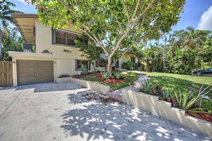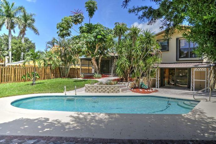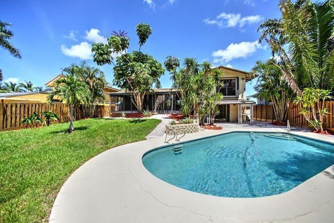 Lauderdale Isles deep water 3BR/2BA with 65 ft on ocean access canal, private dock, no fixed bridges. Beautifully shows interior and exterior w/pool & jacuzzi. The kitchen is completely renovated as are the bathrooms and hardwood floors. Fresh paint inside and out, this is truly ''move-in'' ready. The use of both a pool and a backyard is a unique feature for a home in this neighborhood. There is a single car garage and a two-car driveway. Bring your family and your boat, you will love living here.