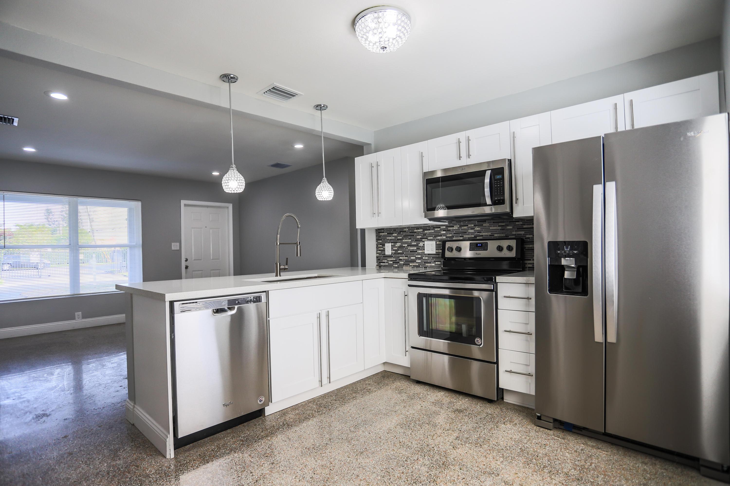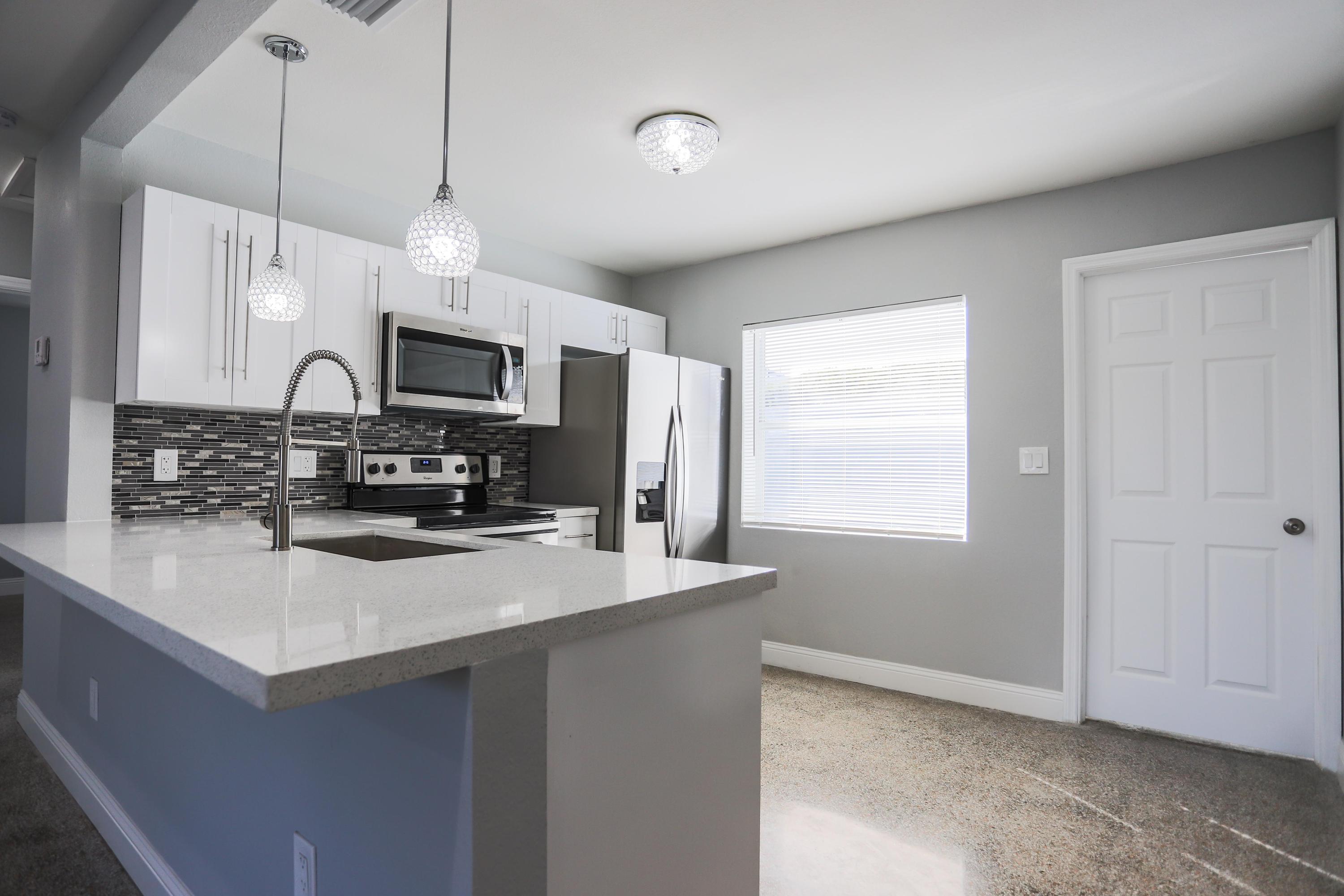 Stunning 3/2 fully remodeled home with an additional Great Room that can easily be converted in to a 4th bedroom or In-Law Suite. This home offers a modern style, open floor plan with all new wood kitchen cabinets, quartz countertops, brand new Whirlpool kitchen appliances. Further upgrades include fresh interior and exterior paint, new baseboards, new water heater, newer A/C unit, upgraded bathrooms, LG Washer and Dryer. Offers a large front and back yard with a new sprinkler system. Ready to move in! Great location!