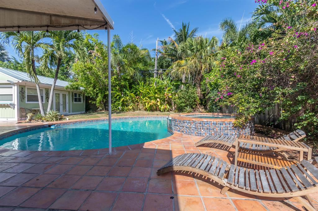 Stunning 3 bedroom 3 bath home in Poinsettia Heights. Completely remodeled kitchen with stainless appliances, white cabinets, granite counter tops. All baths remodeled with granite and glass showers. The main house has wrap around porches and beautiful views of the tropical back yard and freeform pool/hot tub. Huge deck and shed as well. Street is well lit and has curb appeal. This is a must see.