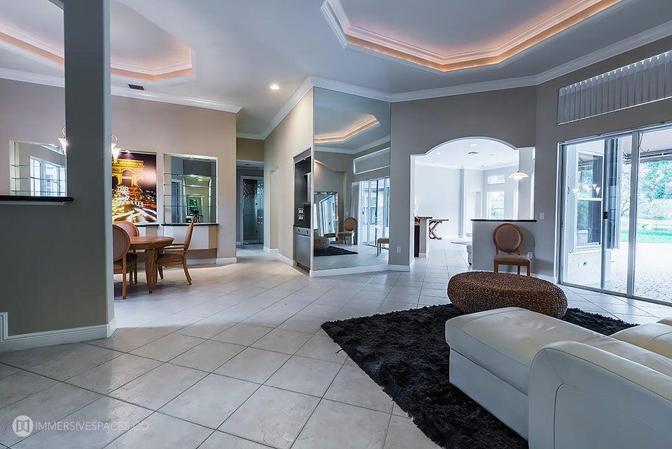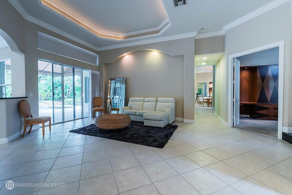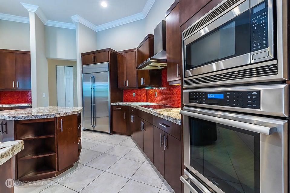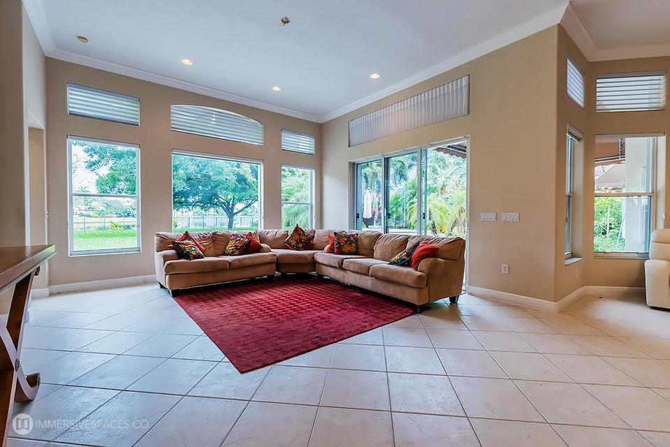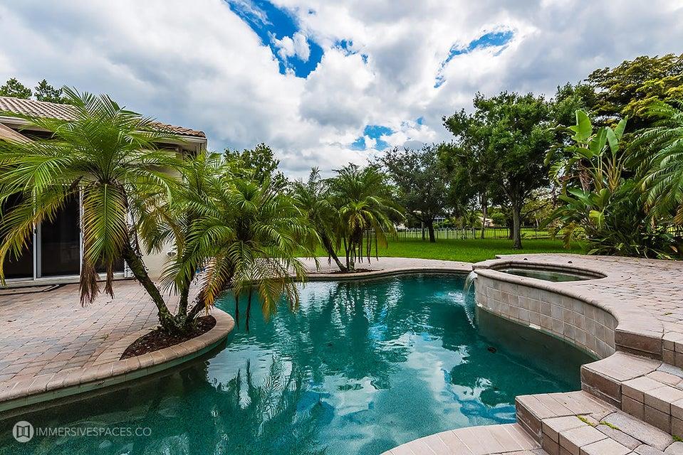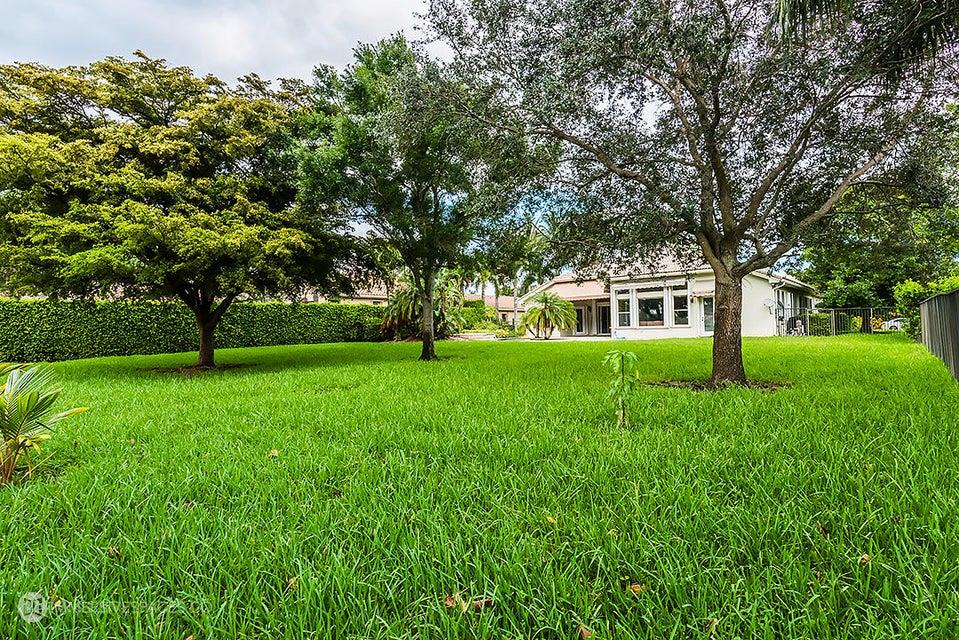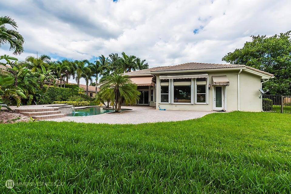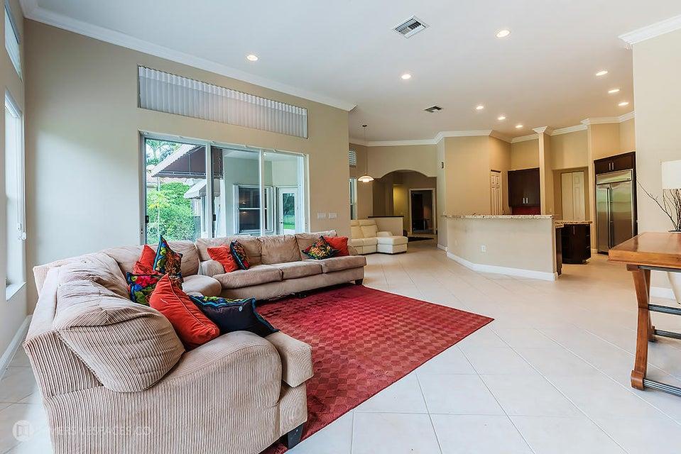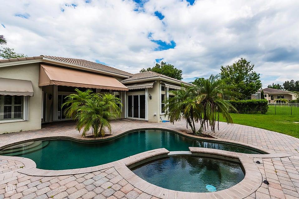 Light and Bright spacious home featuring double tray lighted ceilings, neutral color walls and flooring, ''modern'' style kitchen with ''espresso'' finish cabinetry, stainless steel appliances, cici back splash and granite counter tops. Lots of windows throughout the house allow for natural lighting to come through. Enjoy the tropical landscape view from almost every room in the house. Nice size free form pool and Jacuzzi and plenty of yard space for kids and great entertaining.