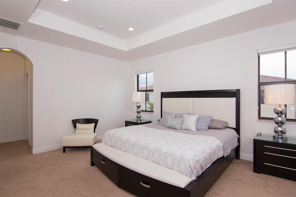 Get ready to fall in LOVE! This Wellington model with 5 beds/4.5 baths is like NO OTHER! With brand new, sparkling, porcelain tile flooring, a completely renovated kitchen with European style cabinetry & cascading quartz countertops, custom, white vanities in the master bath, & a guest bath that can only be found magazines, why would you look any further? Space & natural light, & a peaceful & private back patio are just added bonuses. The home has a Mediterranean style elevation with stone accents & faces the largest lake with fountain in the Executive community. Sidewalks for jogging & biking, pergolas with benches to take in the serene lake views are just in your front yard! Great impact windows! *$2000 CREDIT* towards any new upstairs flooring using sellers preferred vendor. SEE NOW!
