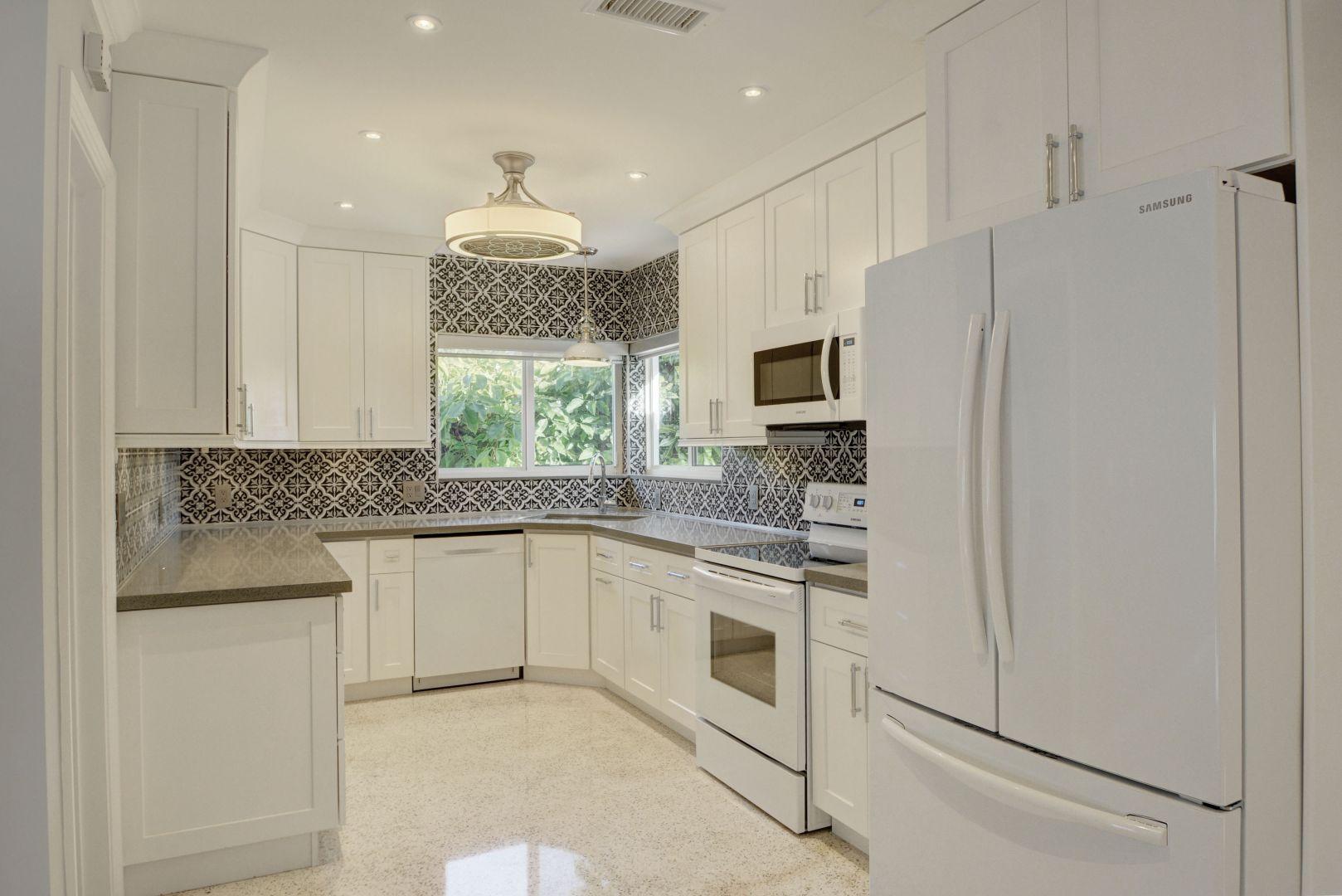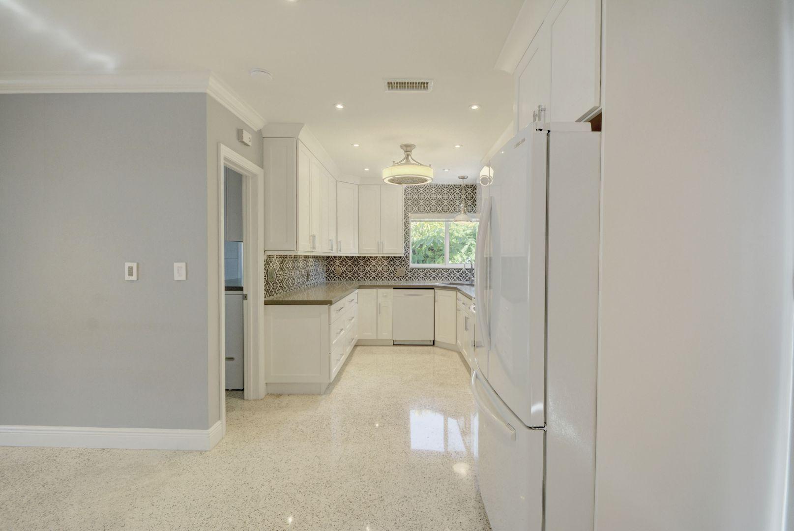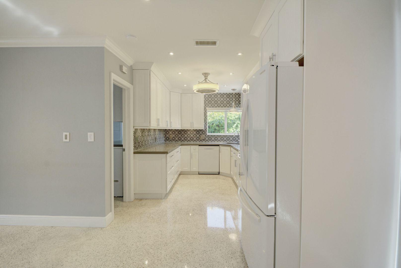 THIS MAGNIFICENT, RENOVATED FROM TOP TO BOTTOM 3 LARGE BEDROOMS , 2 FULL BATHROOMS INCLUDING A MASTER SUITE, HAS NEW IMPACT, HURRICANE RESISTANT WINDOWS THROUGHOUT, GORGEOUS IMPORTED BRICK PAVERS ON THE BACK OF THE HOUSE, A WELL APPOINTED SEATING AREA IN FRONT OF THE HOME ,WITH PLENTY OF PRIVACY AND ROOM FOR A POOL CAN BE YOURS. THE KITCHEN AND BATHROOMS HAVE BEEN RENOVATED DURING THE LAST YR.. THERE IS TERRAZZO IN ALL LIVING AREAS. BRAND NEW APPLIANCES. WALK IN FULL SIZE HUGE LAUNDRY ROOM WITH A SEPARATE ONE CAR GARAGE. THERE IS NOTHING TO DO TO THIS HONE EXCEPT BRING YOUR TOOTHBRUSH AND PERSONAL BELONGINGS