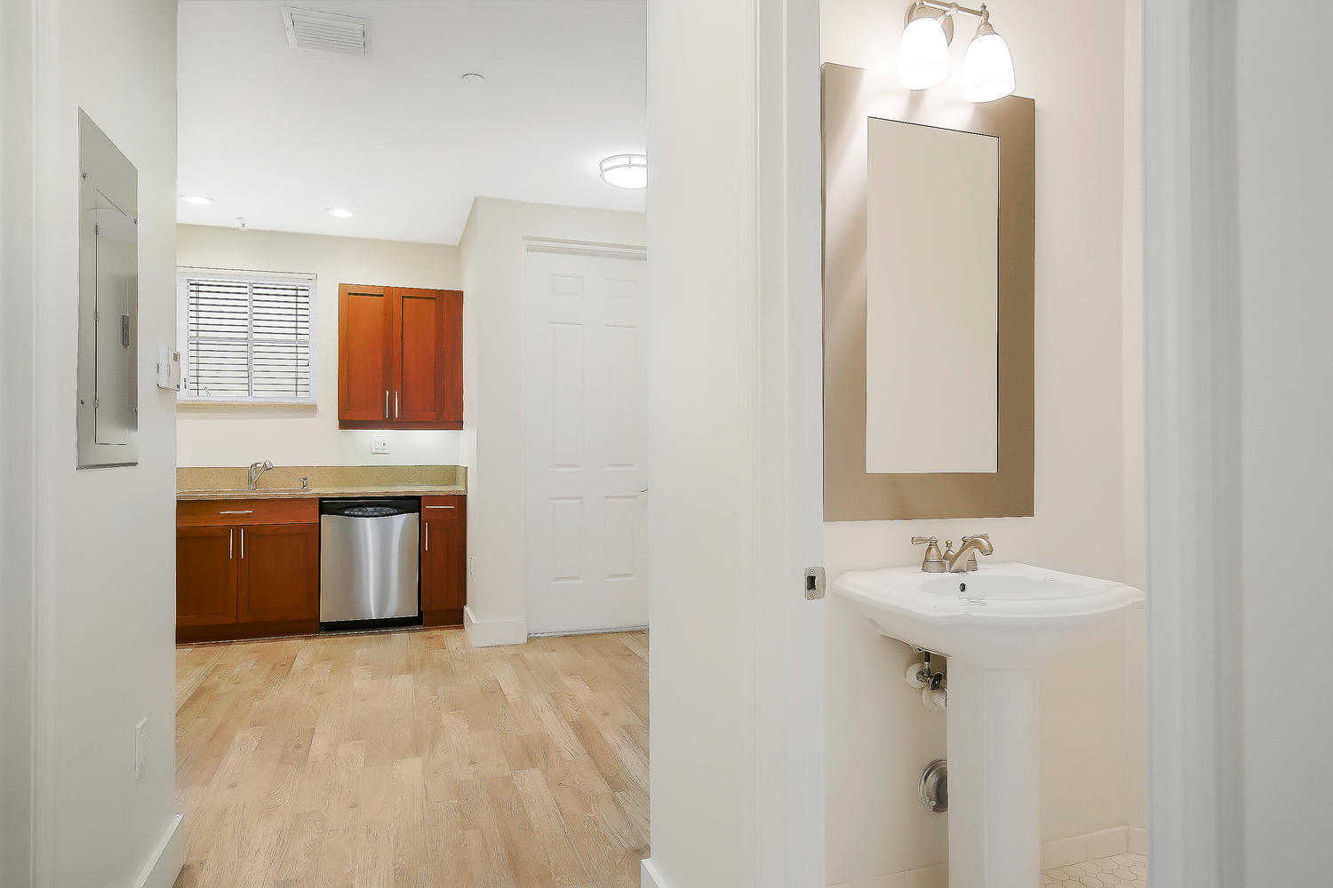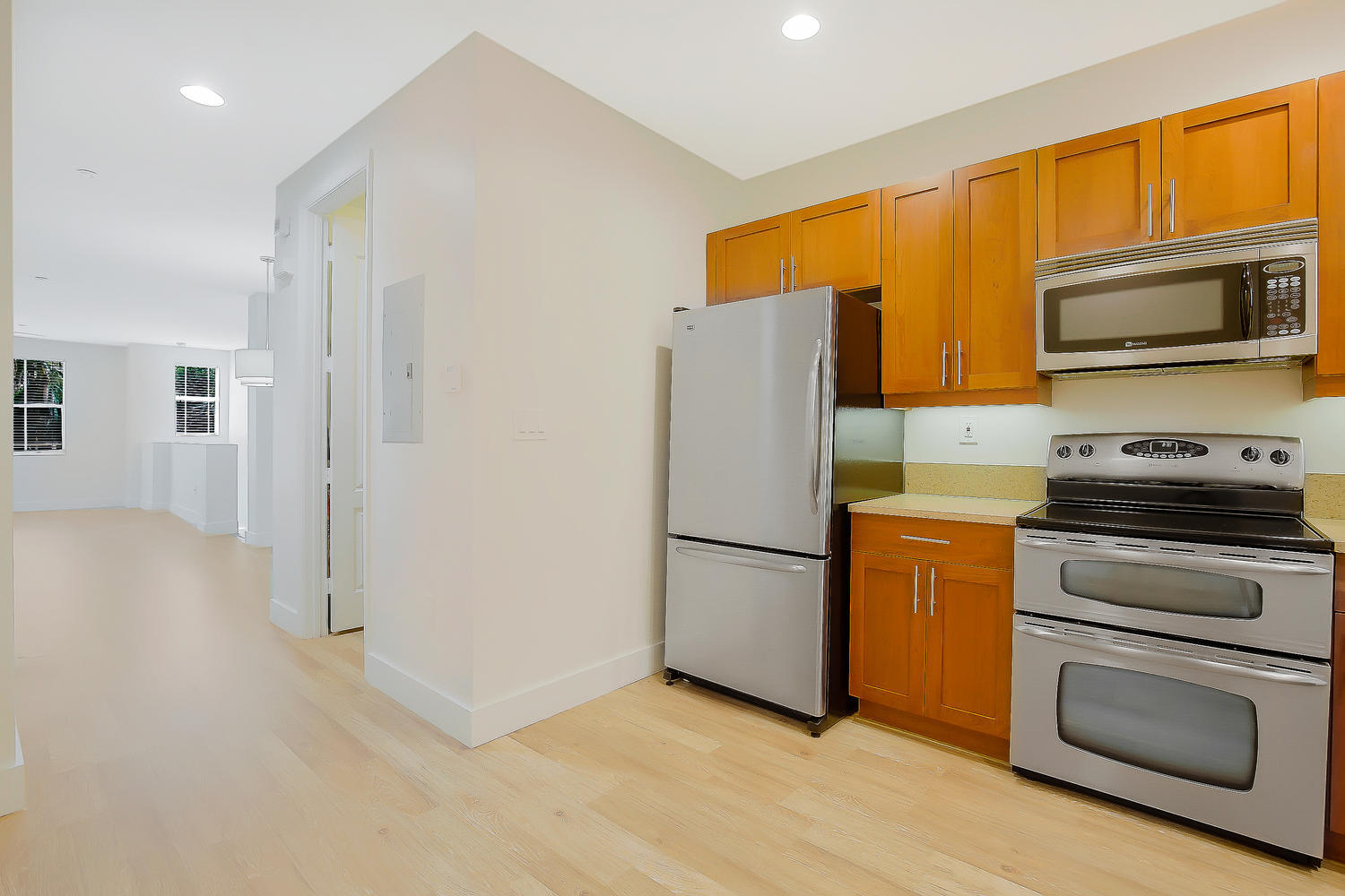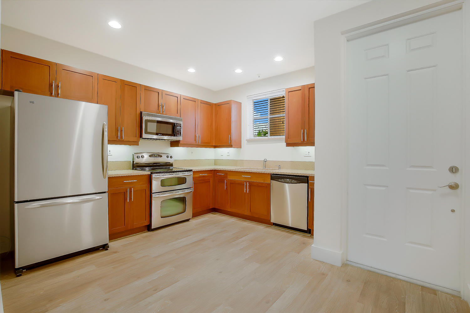Complete update and remodel in September 2017! Paved step-up walkway leads you into this unit with a modern tone and traditional feel. A must see! Brand new wide-plank wood laminate flooring, SS kitchen appliances with granite countertops, tall baseboards, new interior hardware, wood stairs and more. Brand new A/C 2016, double oven, wide refrigerator, new bath and light fixtures throughout, upgraded mirrors and modern high-end ceiling fans. Private entry in front and rear, 1 assigned parking spot, and close to mailbox. Impact glass throughout, custom wood built-in closet shelving, with clean and bright white subway tiled baths. Laundry room with stacked washer/dryer and plenty of extra storage space with more built-in shelving. Solid construction keeps noise out and secure during storms!!!
