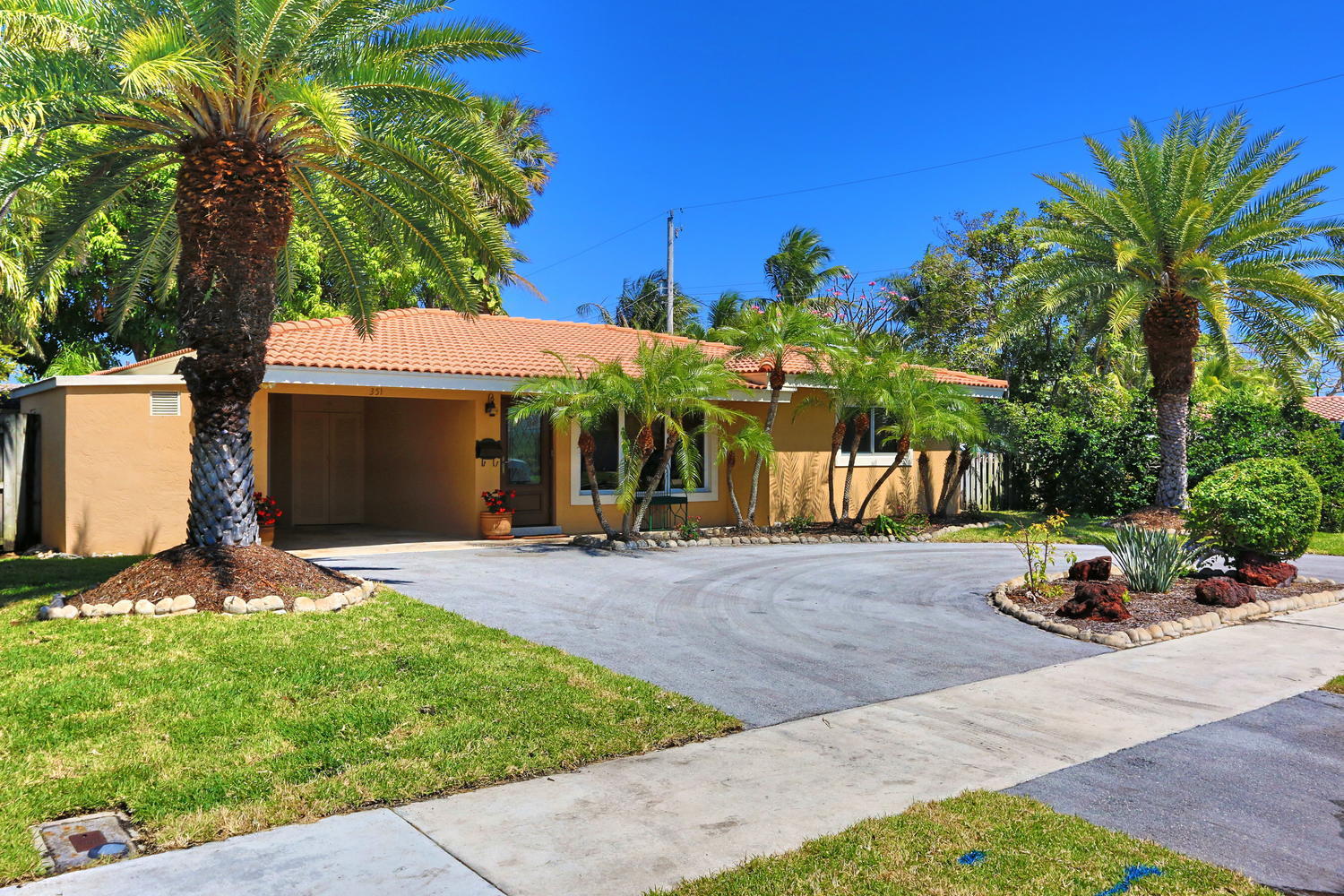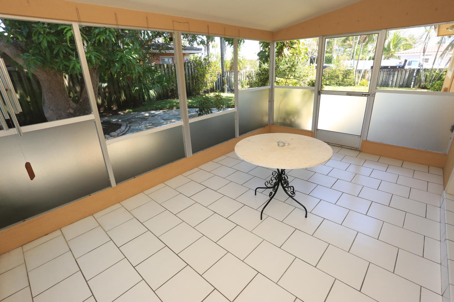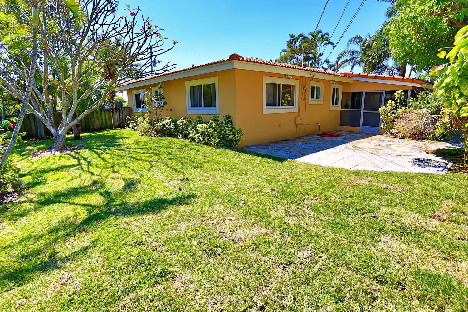 Adorable two bedroom, two bath Cottage home in one of the most desirable neighborhoods in Pompano Beach. As you enter through the custom signature impact front door you will be met with marble floors and baseboards throughout, spacious living room, separate dining area, large kitchen area great for entertaining. Sizable master bedroom, travertine walls with onyx inlay in master bathroom and shower, wood vanity with gold fixtures. New exterior stucco and paint, impact windows with marble sills, tropical landscaped yard with mango tree, butterfly garden, flagstone patio and walkway, exterior sensor lighting, new plumbing and electrical panel. Ceramic tile in the Florida room and utility room. New sod and sprinkler system, shadowbox fence around yard with stuccoed shed. Home security system.