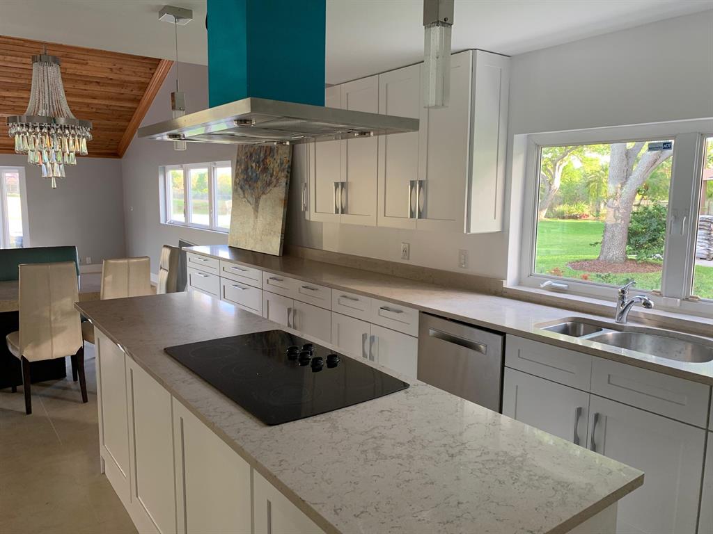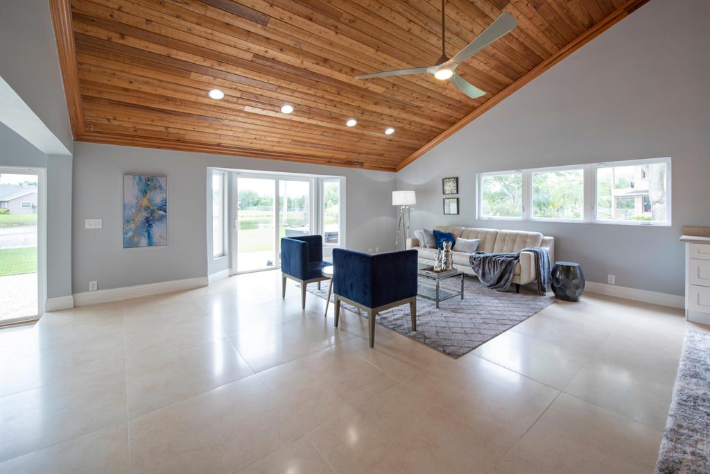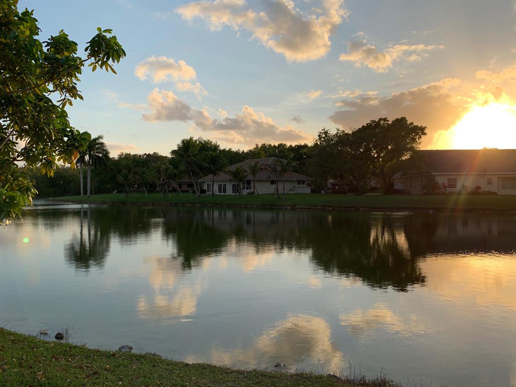 This Beautiful Home is Back on the market since the original contract fell through. One of a kind modern two story newly renovated home with tropical landscape on the water is located on a private cul de sac in Whispering Pines on builders acre. Overlooking a canal & privately wooded park & horse trail. Next to walking/bike path, near Flamingo Gardens. The new kitchen is a chef's dream with new high end appliances including 42'' refrigerator, cook top/vent on the island, and double oven. The new master bathroom is modern and luxurious. The indoor open living area with high cedar cathedral ceilings is wired for an indoor and outdoor sound system,. The office/in-law suite/baby/nanny room has full bathroom. great neighborhood and neighbors. New Roof, Floors, Impact Windows, Kitchen/Baths.