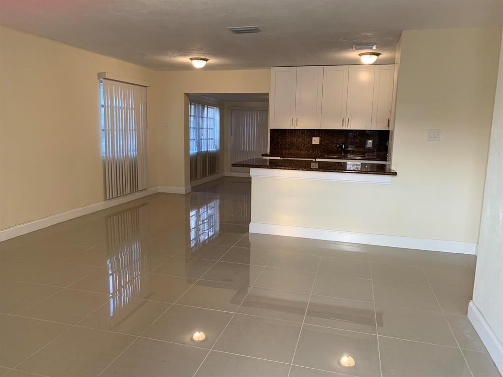 The house is located in a great residential neighborhood. Beautiful remodeled 3 bedrooms 2 bathrooms with a huge Florida room and a big family room. New tile floor throughout whole house. Both bathrooms have been completely remodeled. Brand new open kitchen with granite top. Brand new AC and water heater. New flat roof and new painting interior and exterior and a nice shed out back...and more. Too many upgrades to list. Must see!! Move in ready. The property shall be sold as is.