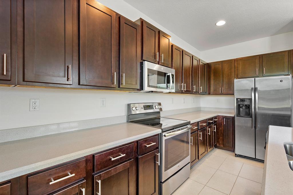 WOW! This 2017 Built End Unit Townhome is ready for its new & proud owner! Talk about attention to detail from one of America's best builders, DR HORTON. Large Kitchen with a grand cooking island, quartz countertops, dark wood cabinetry & SS Appliances. Modern Slate tile floors throughout your ground level living space -- tons of natural light - high ceilings - hurricane impact sliding doors -- updated baths with contemporary vanities, wall cut-outs in the tiled shower walls - enormous master suite with a tremendous walk-in closet & dual sinks in the master bath with a separate shower enclosure -- Madison Place is a very well manicured, gated development with a beautiful lakefront community pool, playground & lounge area all included in a LOW $80/month HOA! This one truly is.. A must see!