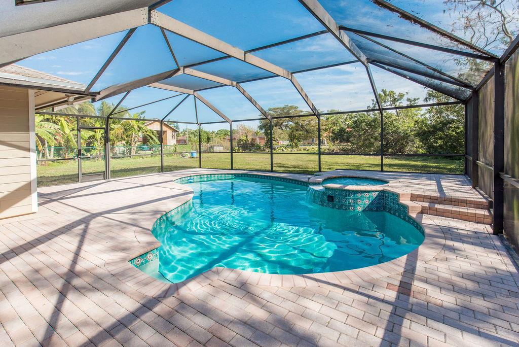 Secluded hideaway in the middle of EVERYTHING! This home features a 1.67 acre tree filled lot directly on a large canal at the end of a cul de sac... and that's just the beginning! This is a 3/2 home with impact windows and sliders throughout, 2 car garage with extra storage area, beautiful ''woodlike'' porcelain tile expertly installed provides a warm consistency, while the white shaker cabinets and quartz counters are everything a modern designer could imagine. The kitchen features upgraded stainless steel appliances including a double oven while the master suite is oversized with a bathroom suite that includes double sinks, a step down shower and a spa like tub! This home is a one of a kind that centers around the screen enclosed free form pool with spa. Hurry this will not last!!!
