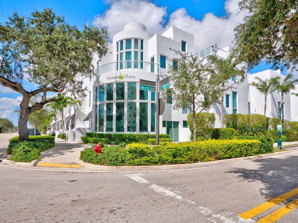 This is the one you have been waiting for. Thoughtfully designed & rarely available, this contemporary townhome is located in Bamboo Flats, one of the limited townhome developments in downtown Fort Lauderdale's hottest new neighborhood, Flagler Village. From the moment you enter the gated tropical courtyard, you will be transported to a tropical ''zen like'' oasis. Located in one of the best locations within the community, this townhome has one of the most popular & versatile floor plans in Bamboo. You will love both, the Southern exposure, which maximizes interior natural light, as well as the airy feel created by the 9,10,11 & 20 foot ceilings. You will also love the numerous upgrades and design, including spacious kitchen, real hardwood floors & stairs, polished travertine flooring,
