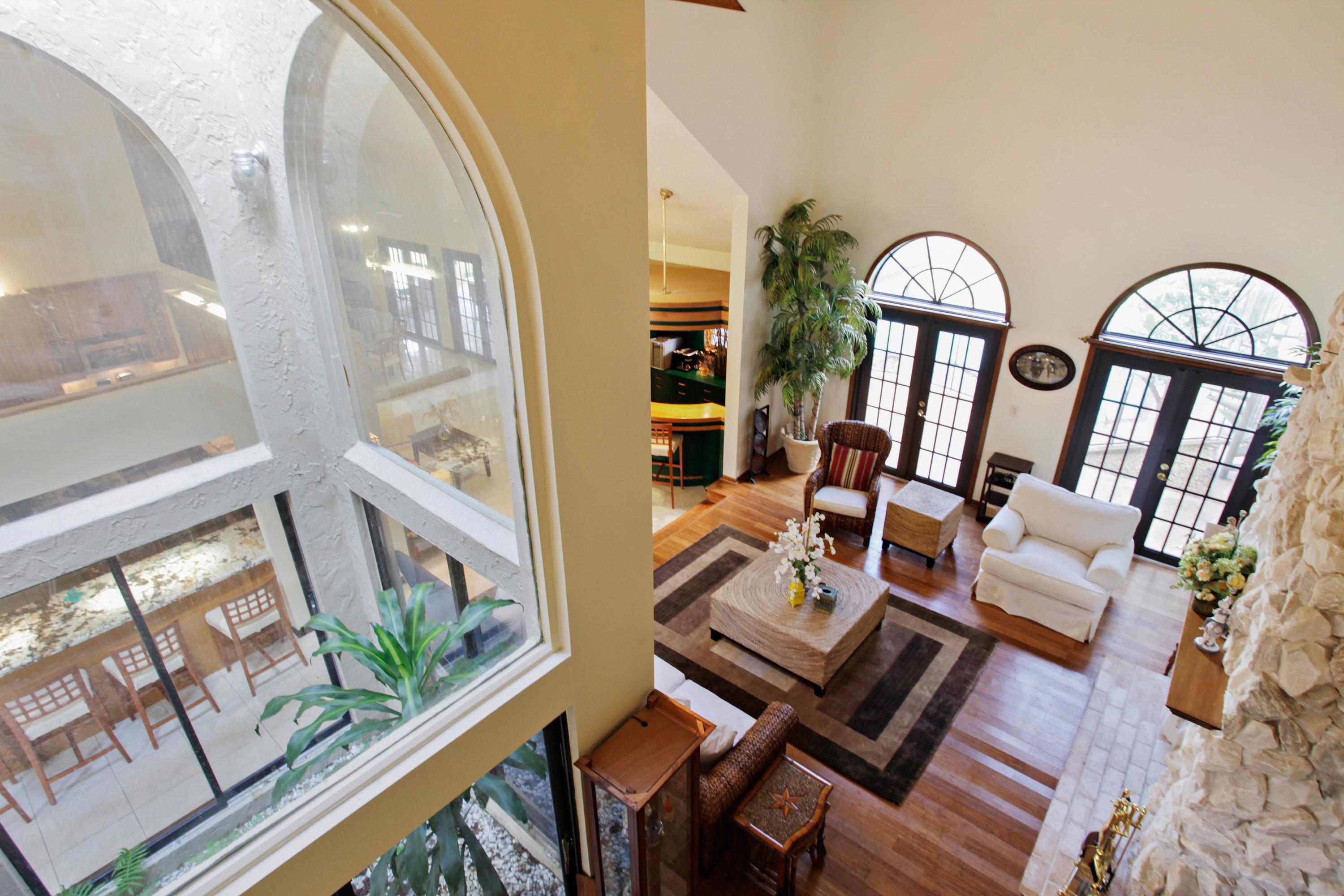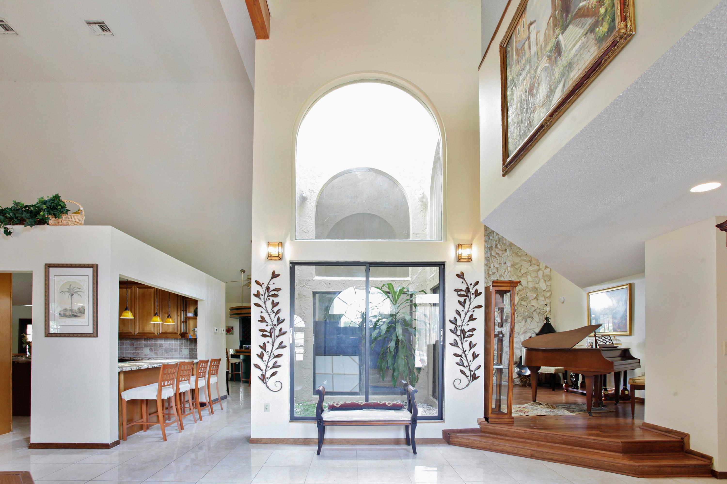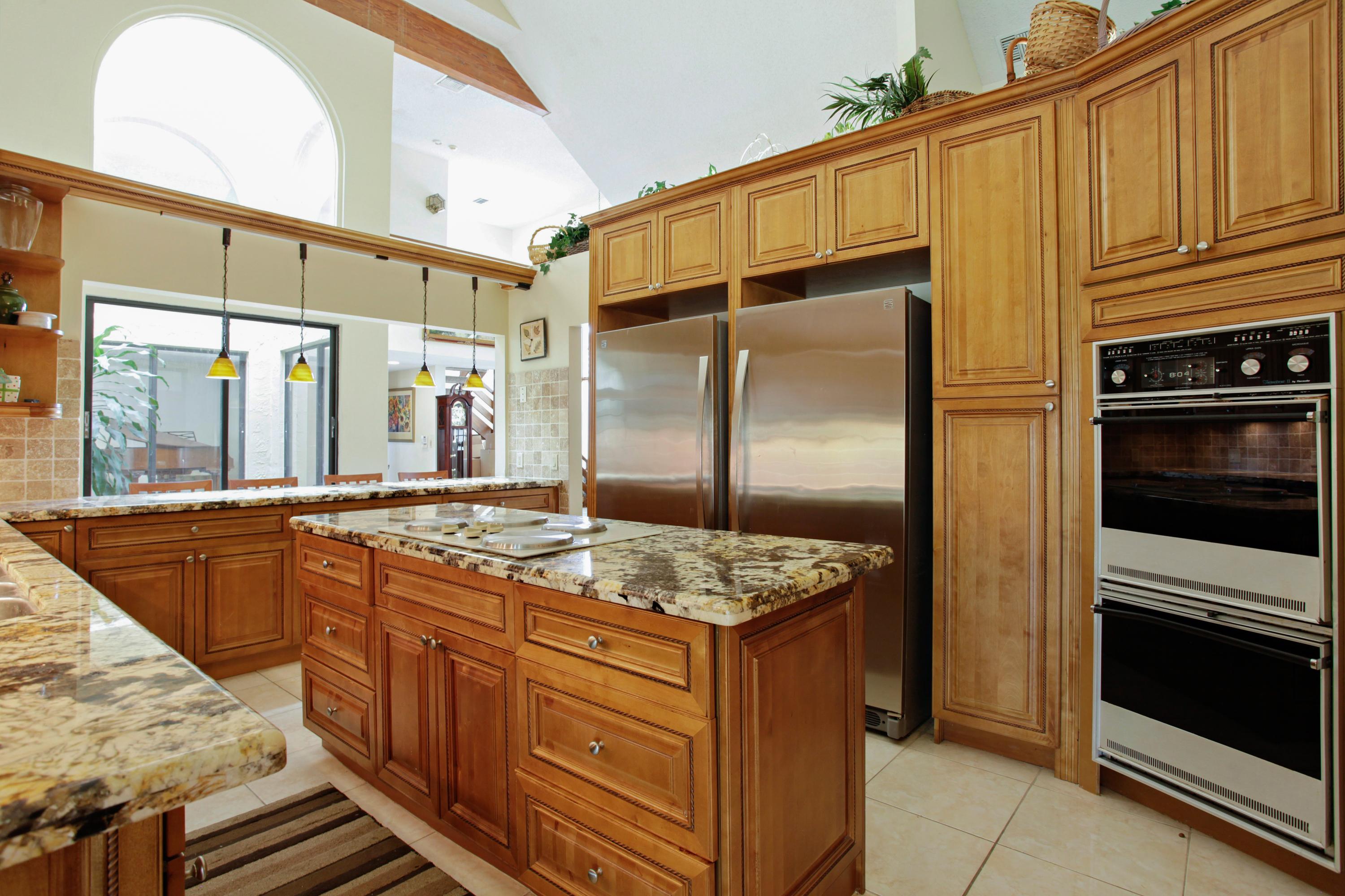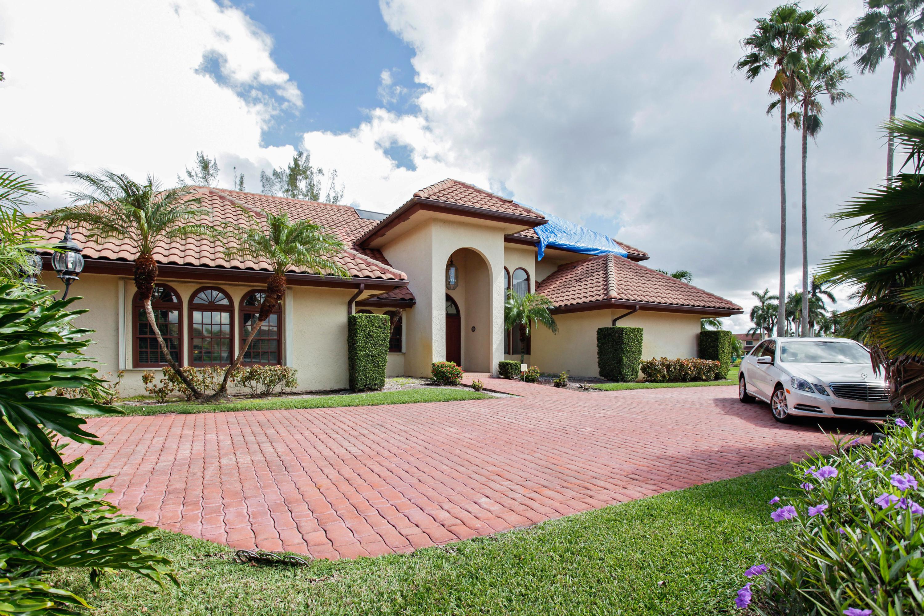 Breathtaking Mini Estate situated on a large corner acre lot on a pond. This spacious 5 Bedrooms, 5.1 Baths, 3 car garage, Mediterranean pool home has a unique open foyer, glass enclosed courtyard, and floor to ceiling fireplace, and built in bar. The updated open kitchen features stainless steel appliances, double oven, double refrigerator, granite counter tops, 42'' wood cabinets, accordian hurricane shutters, hardwood and tile floors. The Master bedroom suite has 2 spacious walk-in closets, large bathroom area, an adjacent private office, nursery/den with a Juliet balcony and spiral staircase leading to the pool and backyard. This home is ideal for entertaining with a build-in grill, fire pit, large pool and spa, and lush landscaping. A must