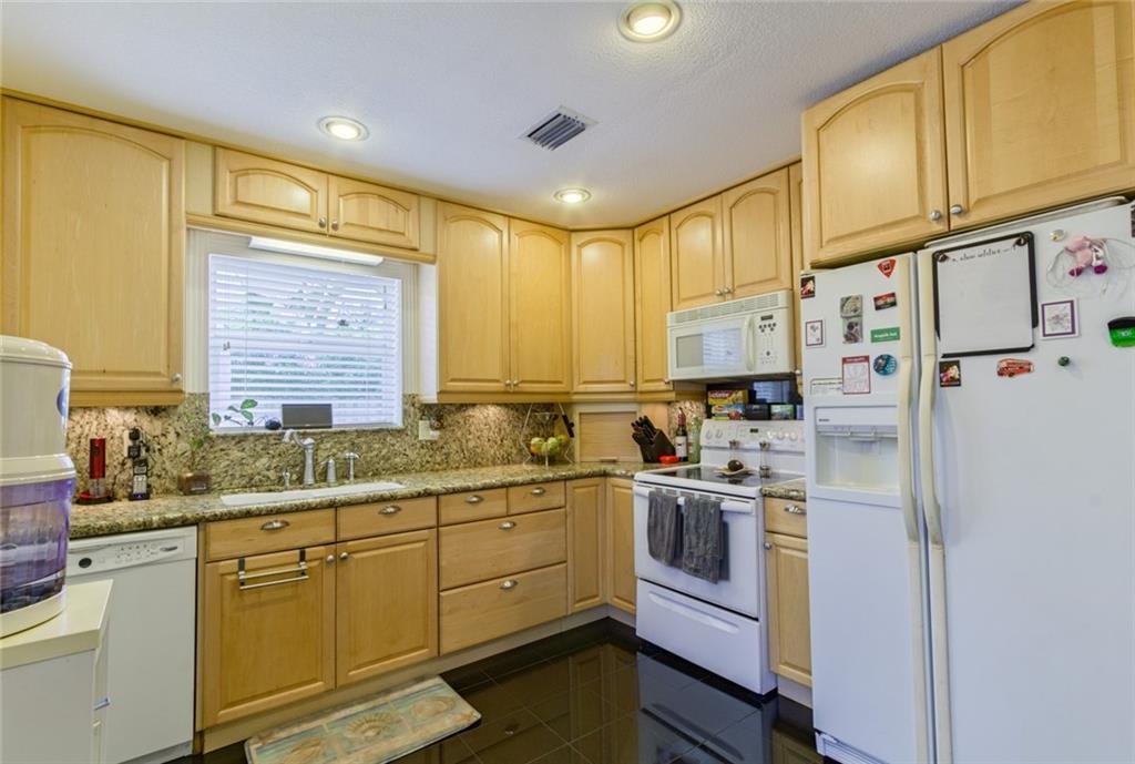 Completely renovated home right down to the plumbing and drywall - upgraded open kitchen with granite counters, tile bathrooms, wood floors, indoor laundry with tankless hotwater heater, finished closets, knockdown texture and crown molding. Owners did everything imaginable - and of course the yard is fenced and the pool is ready! Large wood deck for outdoor entertaining and pavers around the pool. Plenty of lawn as well for pets or a playset. Carport has storage shed. Paved circle drive.