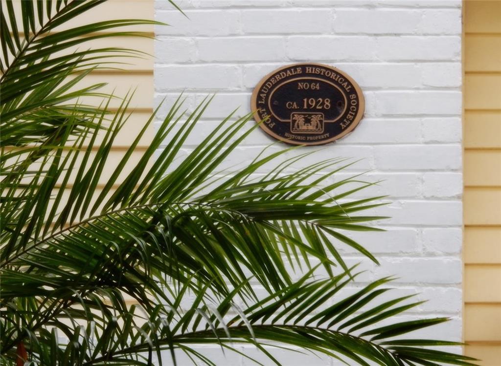 Key West style 1-story home with true Florida charm! Centrally located in Victoria Park neighborhood on a corner lot, nestled in an oasis of luscious tropical landscaping among 7 other historical homes designed by pioneer Ft. Laud developer. Featuring 2 bedrooms/1 bath, 1063 sf living space, interior architectural accents preserved in their original form. Natural gas fireplace, Dade County pine floors, Florida room with vaulted ceiling. Walk out to tropical back patio from bedrooms & Florida room.
