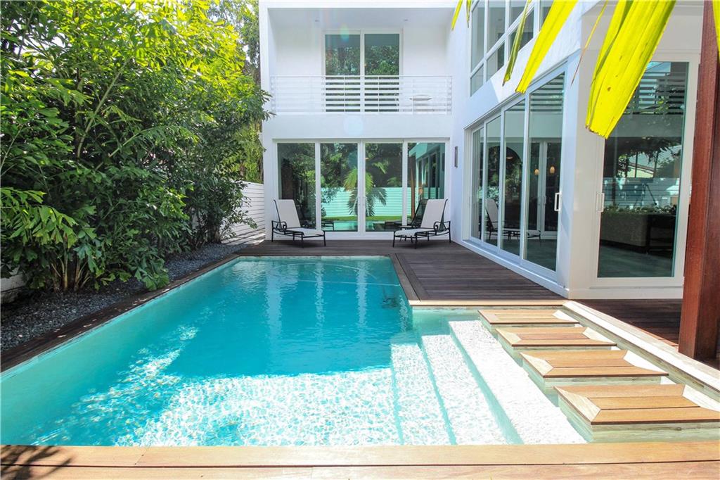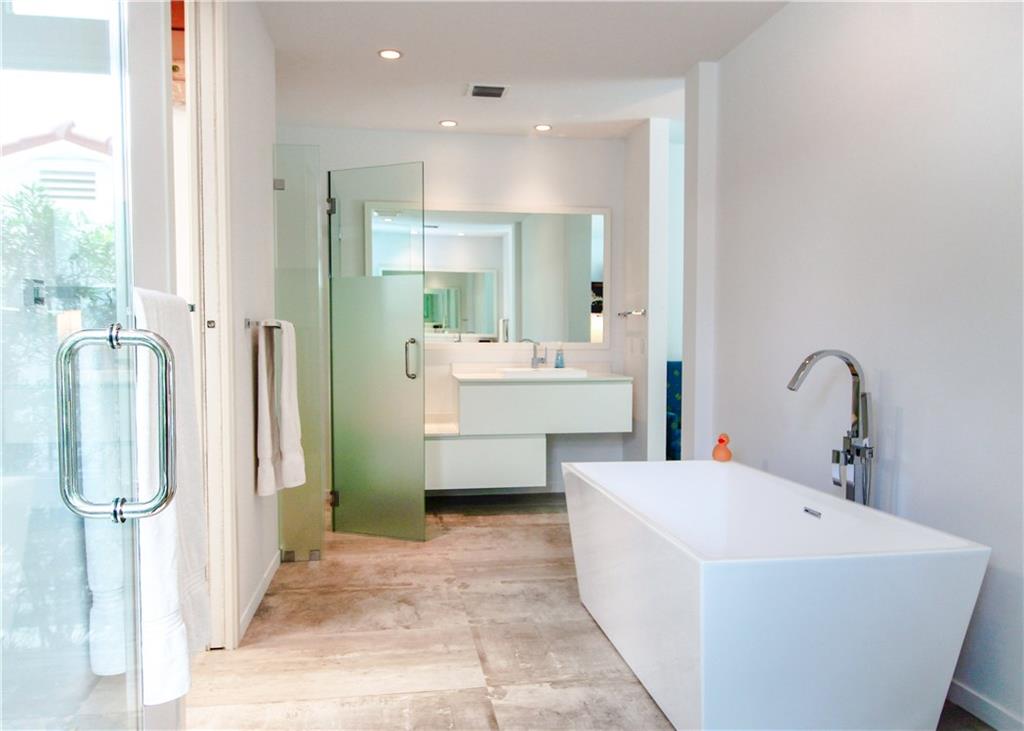 Stunning contemporary residence with exceptional finishes & a tranquil waterfall entry feature. First floor master suite with a serene view of the salt water pool & private yard. Kitchen features natural gas Bosch cook top, Thermador refrigerator, an oversized island for dining & entertaining featuring Quartz countertops. An abundance of natural light with Porcelain floors accent a striking floating staircase. Second level features 3 ensuite bedrooms & grand loft & oak floors. Home generator.
