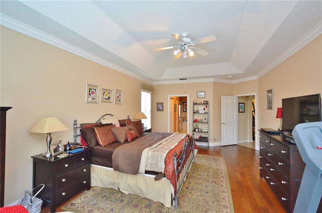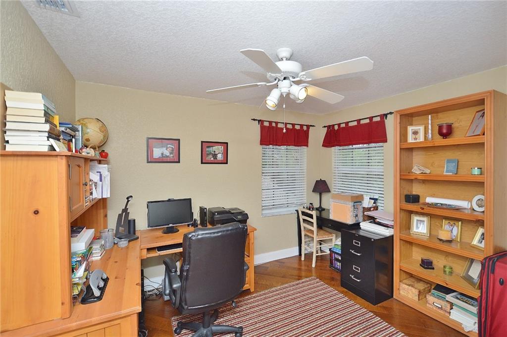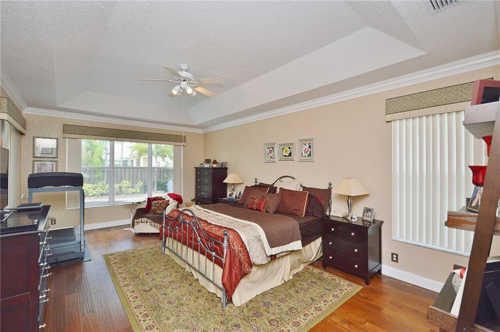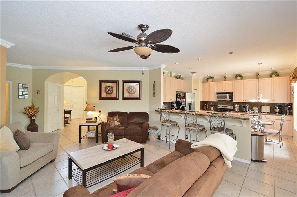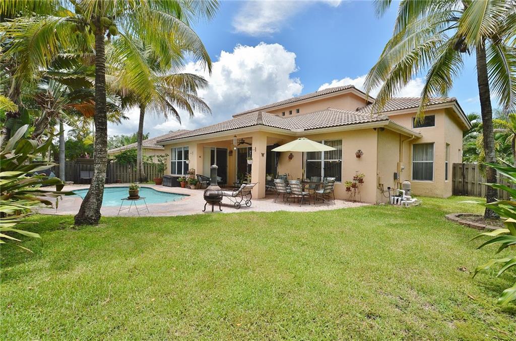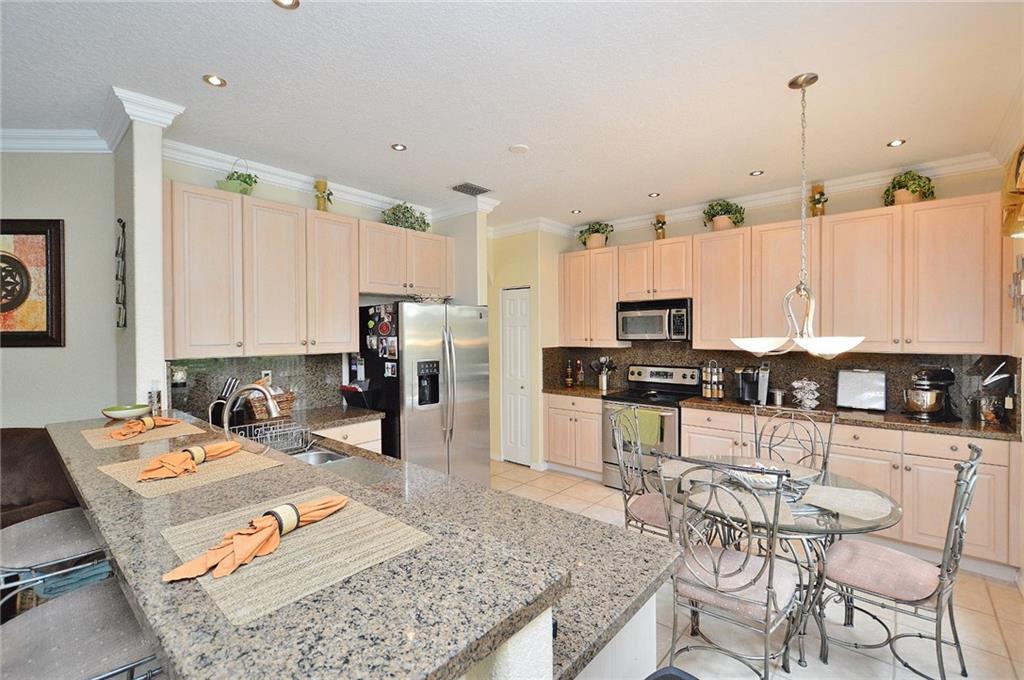 Like a Model - A Showplace! Approx 2600 SF A/C. High Volume Entry, Knockdown walls/ceiling, HUGE Mstr Br 1st Floor. 3 Br's/Loft Up. 2 Baths remodeled, Crown Molding thru-out., Tiled 1st floor; Wood floors in Mstr Br, Stairs, Loft & 4th Br. Carpet in 2 Br's. Kitchen: 42" Wood cabinets, S/S Appl, Granite counter/snack bar. Pool w/South Exposure & pavers. Storage cabinets in garage. Maint Incl: Lawn, sprinklers, 24 guard, Cable, Alarm Monitoring, Weight rm, Comm pool & play area. City Park at Entrance.